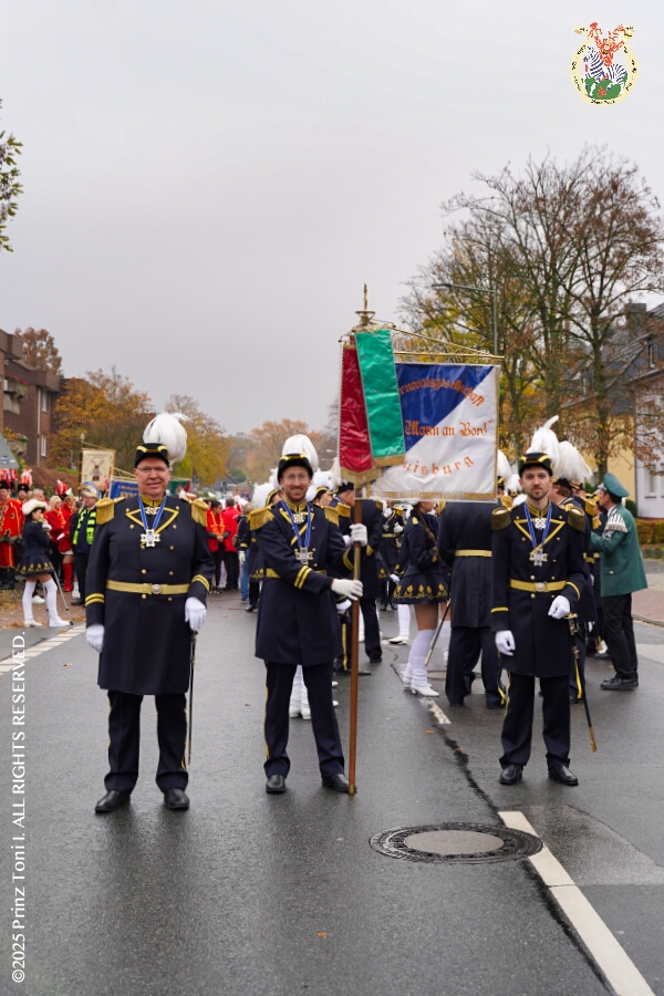 25 2 Mal Heimspiel - Sonntagmorgen 9. November, Biwak der KG Alle Mann an Bord - die »Blauen Jungs« 1955 e.V., der „Heimathafen“ für unsere Christin und indirekt auch für se. des. Tollität. Ein Geschenk gab es auch, eine „Pömpel“ aus Marzipan. Danach dann zum Hoppditzerwachen der KG Südstern. Die Heimatgesellschaft in Serm von Pia und Toni.