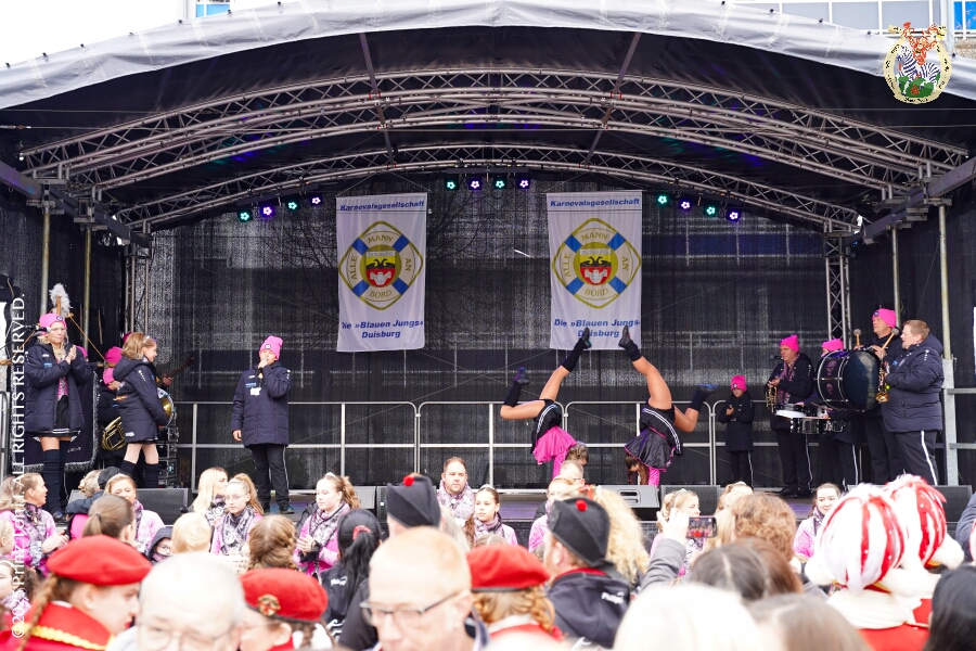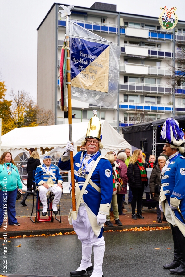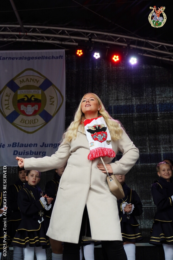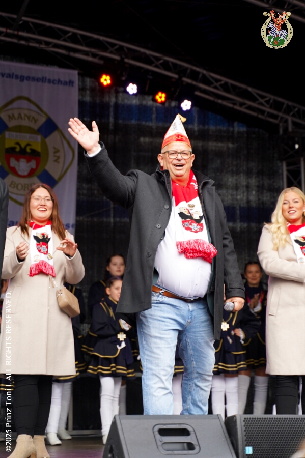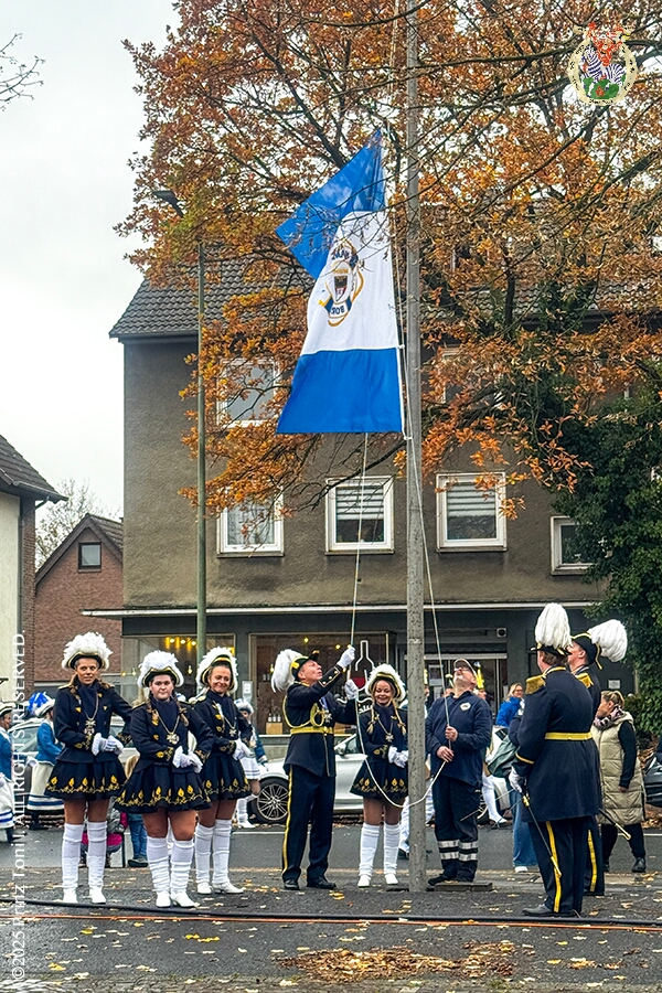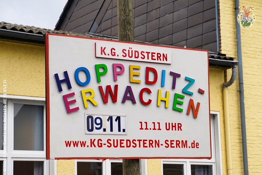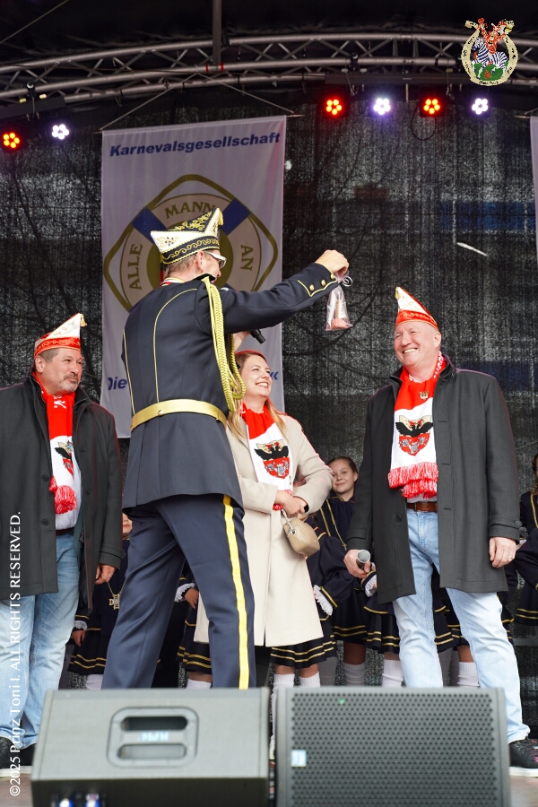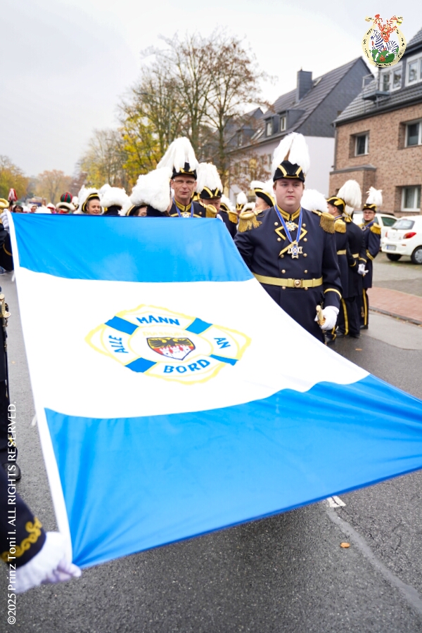 2 Mal Heimspiel Sonntagmorgen 9. November, Biwak der KG Alle Mann an Bord - die »Blauen Jungs« 1955 e.V., der „Heimathafen“ für unsere Christin und indirekt auch für se. des. Tollität. Ein Geschenk gab es auch, eine „Pömpel“ aus Marzipan. Danach dann zum Hoppditzerwachen der KG Südstern. Die Heimatgesellschaft in Serm von Pia und Toni.