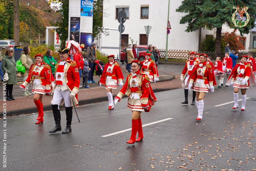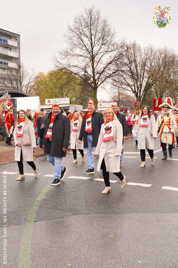 31 2 Mal Heimspiel - Sonntagmorgen 9. November, Biwak der KG Alle Mann an Bord - die »Blauen Jungs« 1955 e.V., der „Heimathafen“ für unsere Christin und indirekt auch für se. des. Tollität. Ein Geschenk gab es auch, eine „Pömpel“ aus Marzipan. Danach dann zum Hoppditzerwachen der KG Südstern. Die Heimatgesellschaft in Serm von Pia und Toni.