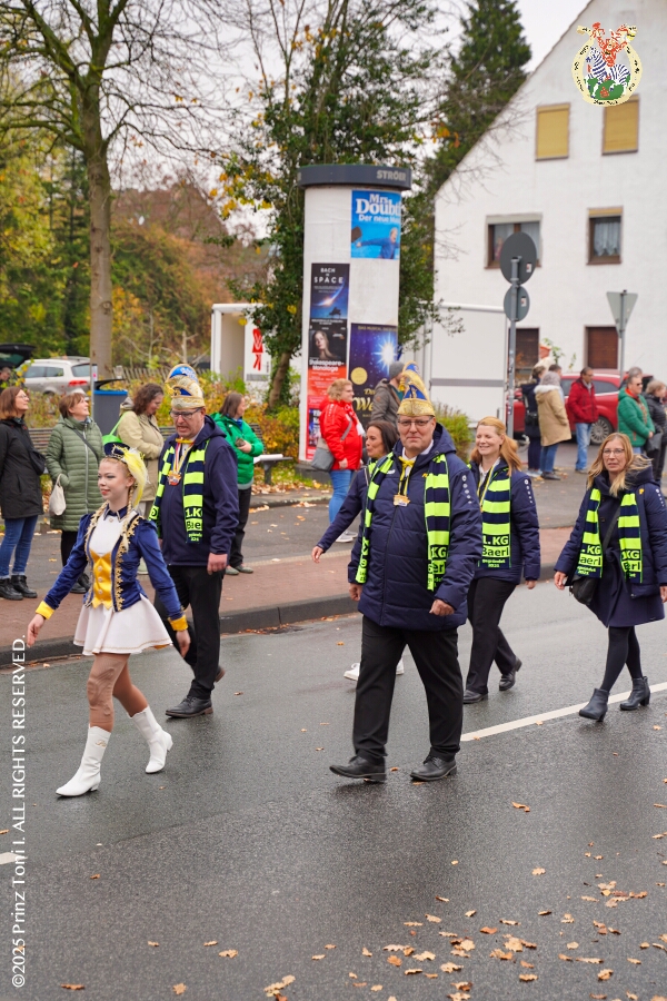 30 2 Mal Heimspiel - Sonntagmorgen 9. November, Biwak der KG Alle Mann an Bord - die »Blauen Jungs« 1955 e.V., der „Heimathafen“ für unsere Christin und indirekt auch für se. des. Tollität. Ein Geschenk gab es auch, eine „Pömpel“ aus Marzipan. Danach dann zum Hoppditzerwachen der KG Südstern. Die Heimatgesellschaft in Serm von Pia und Toni.