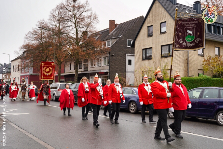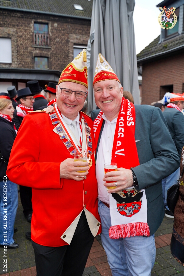 5 2 Mal Heimspiel - Sonntagmorgen 9. November, Biwak der KG Alle Mann an Bord - die »Blauen Jungs« 1955 e.V., der „Heimathafen“ für unsere Christin und indirekt auch für se. des. Tollität. Ein Geschenk gab es auch, eine „Pömpel“ aus Marzipan. Danach dann zum Hoppditzerwachen der KG Südstern. Die Heimatgesellschaft in Serm von Pia und Toni.
