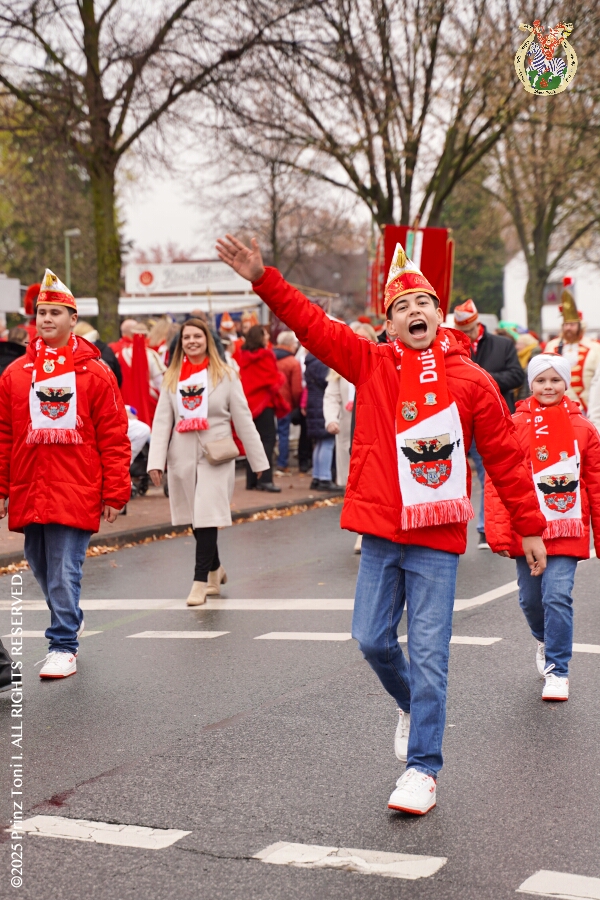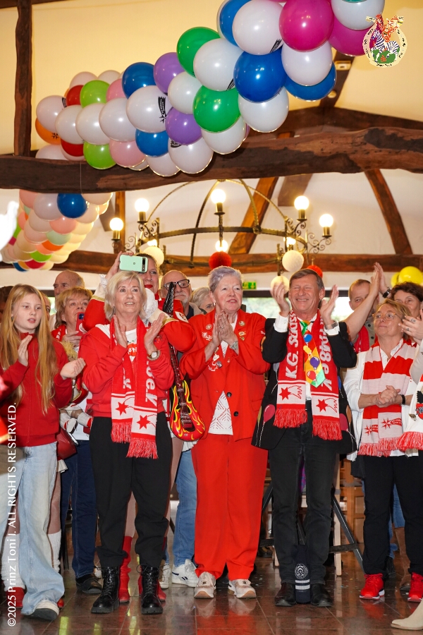 24 2 Mal Heimspiel - Sonntagmorgen 9. November, Biwak der KG Alle Mann an Bord - die »Blauen Jungs« 1955 e.V., der „Heimathafen“ für unsere Christin und indirekt auch für se. des. Tollität. Ein Geschenk gab es auch, eine „Pömpel“ aus Marzipan. Danach dann zum Hoppditzerwachen der KG Südstern. Die Heimatgesellschaft in Serm von Pia und Toni.
