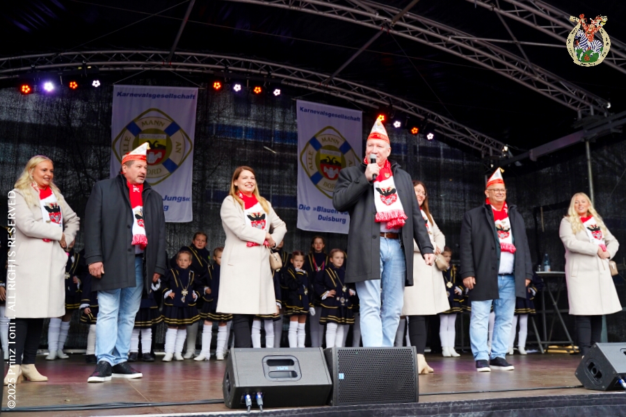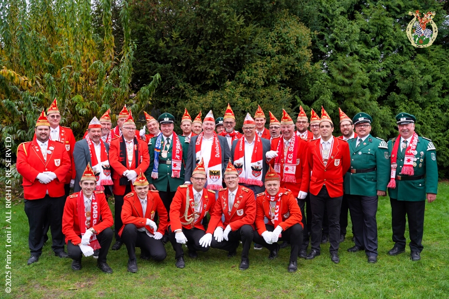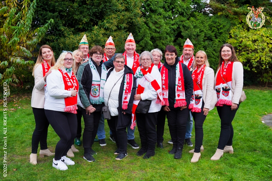 4 2 Mal Heimspiel - Sonntagmorgen 9. November, Biwak der KG Alle Mann an Bord - die »Blauen Jungs« 1955 e.V., der „Heimathafen“ für unsere Christin und indirekt auch für se. des. Tollität. Ein Geschenk gab es auch, eine „Pömpel“ aus Marzipan. Danach dann zum Hoppditzerwachen der KG Südstern. Die Heimatgesellschaft in Serm von Pia und Toni.