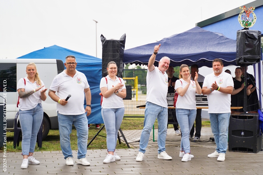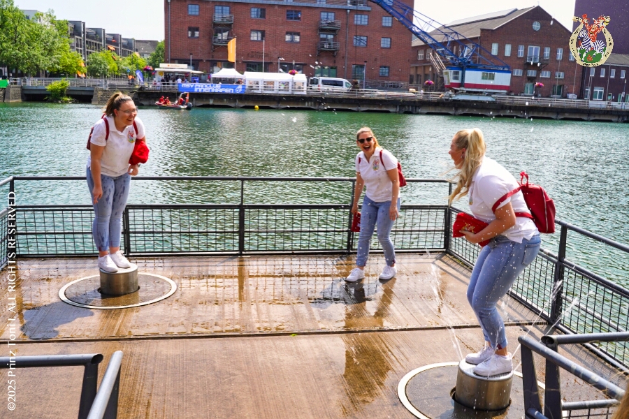 24 Ein schöner und warmer Tag, der 14. Juni - Der Startschuss zur Samstagstour fiel um Mittagszeit im Innenhafen. Wir besuchten die 24. Duisburger Drachenboot Fun-Regatta. Daumen drücken für die Aqua-Garde, ein Boot voller Karnevalisten. Danach besuchten wir das 2. Sommerfest KG Schottenzunft Dusiburg auf der Sportanlage des ETUS Bissingheim. Beim dritten Termin, das Sommerfest der Grafschafter Funken auf dem Quartiersplatz in Moers-Asberg, wurde es ein wenig feucht von Oben, „Abkühlung“. Zurück in Serm überraschten wir Rita und Peter Ambrosius auf der Feier ihre goldenen Hochzeit.