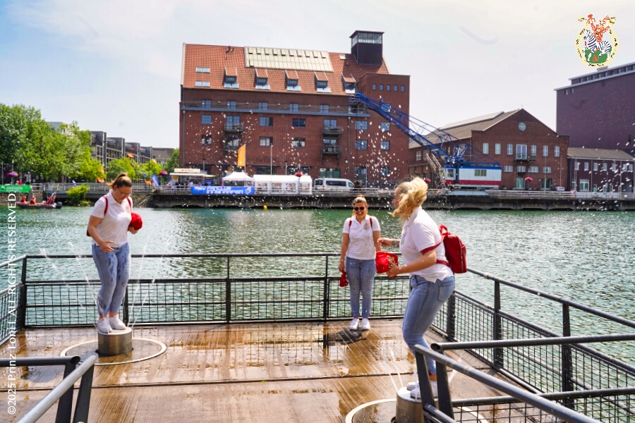 21 Ein schöner und warmer Tag, der 14. Juni - Der Startschuss zur Samstagstour fiel um Mittagszeit im Innenhafen. Wir besuchten die 24. Duisburger Drachenboot Fun-Regatta. Daumen drücken für die Aqua-Garde, ein Boot voller Karnevalisten. Danach besuchten wir das 2. Sommerfest KG Schottenzunft Dusiburg auf der Sportanlage des ETUS Bissingheim. Beim dritten Termin, das Sommerfest der Grafschafter Funken auf dem Quartiersplatz in Moers-Asberg, wurde es ein wenig feucht von Oben, „Abkühlung“. Zurück in Serm überraschten wir Rita und Peter Ambrosius auf der Feier ihre goldenen Hochzeit.