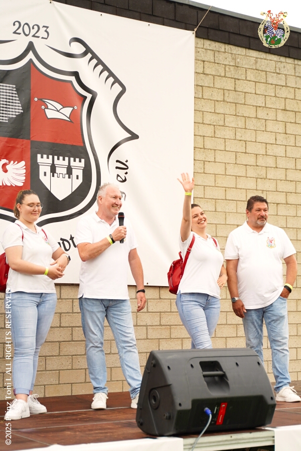 22 Ein schöner und warmer Tag, der 14. Juni - Der Startschuss zur Samstagstour fiel um Mittagszeit im Innenhafen. Wir besuchten die 24. Duisburger Drachenboot Fun-Regatta. Daumen drücken für die Aqua-Garde, ein Boot voller Karnevalisten. Danach besuchten wir das 2. Sommerfest KG Schottenzunft Dusiburg auf der Sportanlage des ETUS Bissingheim. Beim dritten Termin, das Sommerfest der Grafschafter Funken auf dem Quartiersplatz in Moers-Asberg, wurde es ein wenig feucht von Oben, „Abkühlung“. Zurück in Serm überraschten wir Rita und Peter Ambrosius auf der Feier ihre goldenen Hochzeit.
