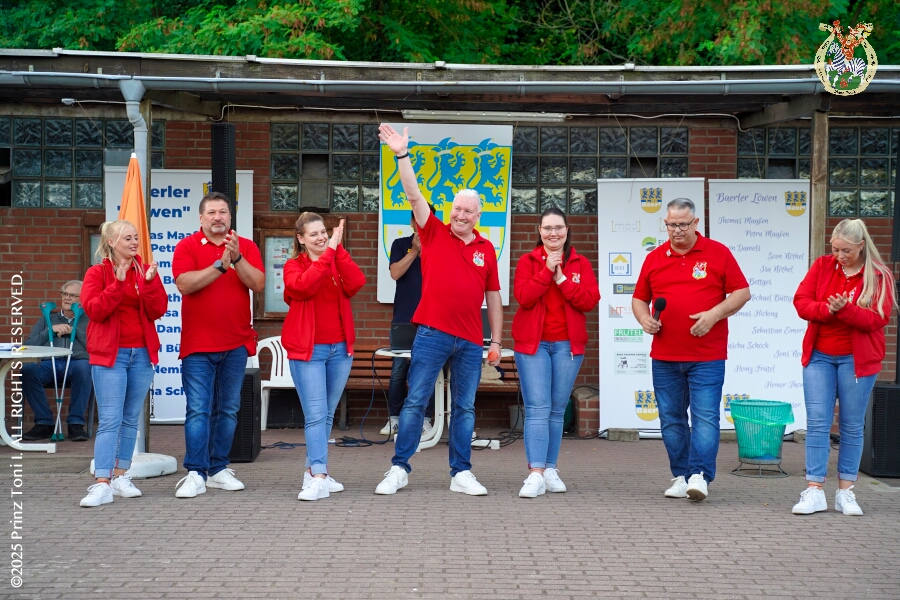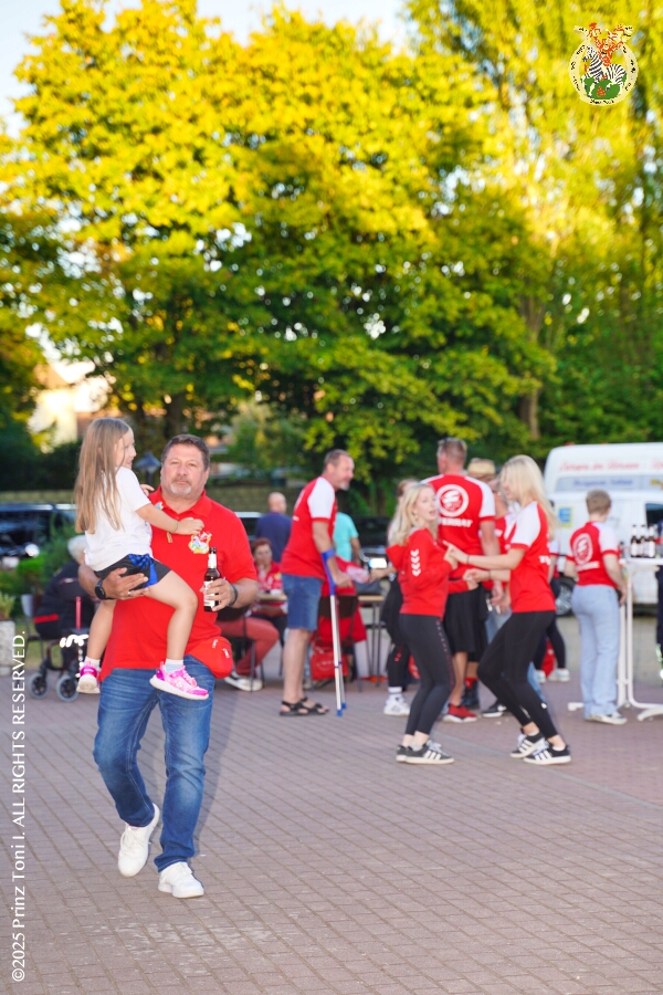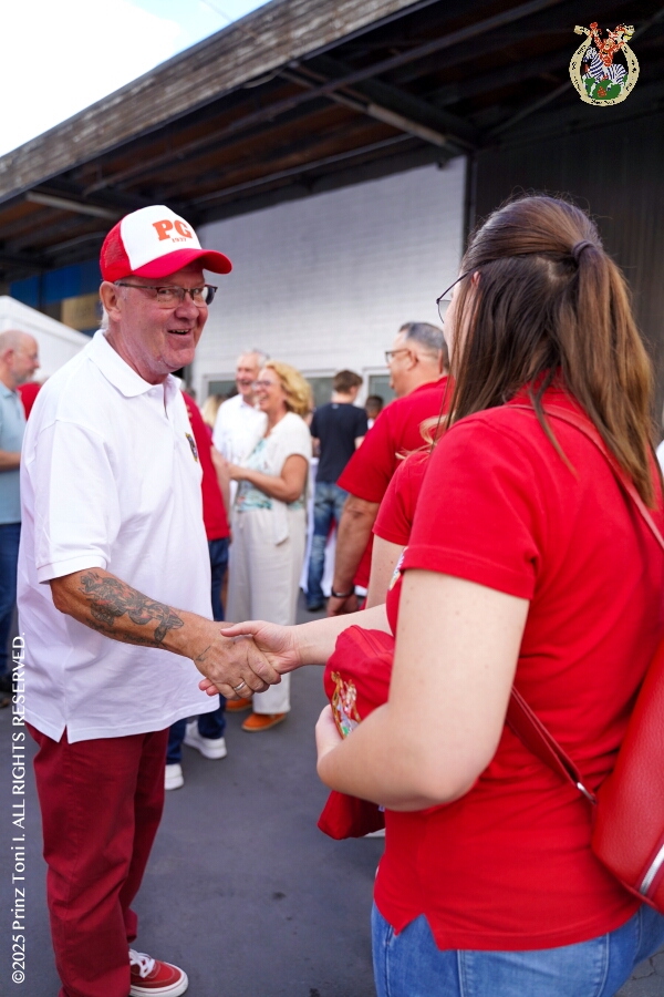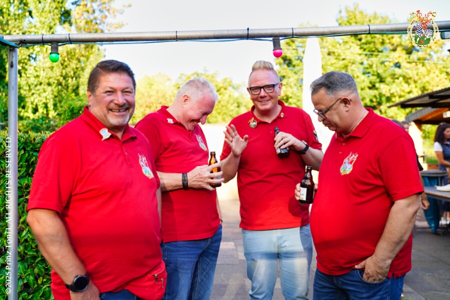 Das „Garde-Grillen“ der Duisburger Prinzengarde ist unser erstes Ziel an diesem Samstag in Duisburg-Meiderich. Danach geht es in den Süden Duisburgs, zur KG Sonniger-Süden. Auf ein kurzes Hallo geht es dann zur KG Rote Funken am Kalkweg. Von dort führt uns der Weg in den Westen Duisburgs. Die 1. KG Baerl Blau-Gelb e.V. feiert ihr Sommerfest auf dem Gelände des TUS Baerl. Das Heimspiel für Hofmarschall Thomas, dem Präsidenten der KG.