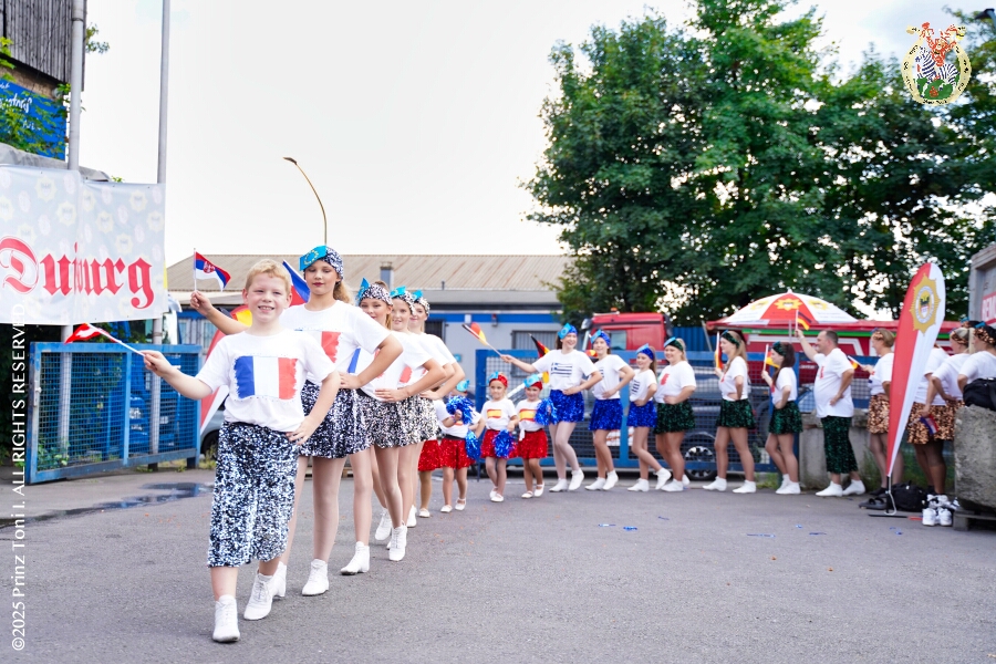 13 30. August, 4 mal Sommerfest - Das „Garde-Grillen“ der Duisburger Prinzengarde ist unser erstes Ziel an diesem Samstag in Duisburg-Meiderich. Danach geht es in den Süden Duisburgs, zur KG Sonniger-Süden. Auf ein kurzes Hallo geht es dann zur KG Rote Funken am Kalkweg. Von dort führt uns der Weg in den Westen Duisburgs. Die 1. KG Baerl Blau-Gelb e.V. feiert ihr Sommerfest auf dem Gelände des TUS Baerl. Das Heimspiel für Hofmarschall Thomas, dem Präsidenten der KG.