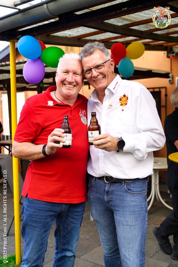 1 30. August, 4 mal Sommerfest - Das „Garde-Grillen“ der Duisburger Prinzengarde ist unser erstes Ziel an diesem Samstag in Duisburg-Meiderich. Danach geht es in den Süden Duisburgs, zur KG Sonniger-Süden. Auf ein kurzes Hallo geht es dann zur KG Rote Funken am Kalkweg. Von dort führt uns der Weg in den Westen Duisburgs. Die 1. KG Baerl Blau-Gelb e.V. feiert ihr Sommerfest auf dem Gelände des TUS Baerl. Das Heimspiel für Hofmarschall Thomas, dem Präsidenten der KG.