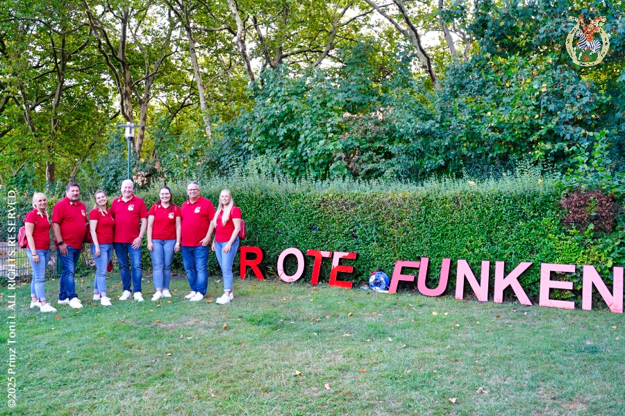 7 30. August, 4 mal Sommerfest - Das „Garde-Grillen“ der Duisburger Prinzengarde ist unser erstes Ziel an diesem Samstag in Duisburg-Meiderich. Danach geht es in den Süden Duisburgs, zur KG Sonniger-Süden. Auf ein kurzes Hallo geht es dann zur KG Rote Funken am Kalkweg. Von dort führt uns der Weg in den Westen Duisburgs. Die 1. KG Baerl Blau-Gelb e.V. feiert ihr Sommerfest auf dem Gelände des TUS Baerl. Das Heimspiel für Hofmarschall Thomas, dem Präsidenten der KG.