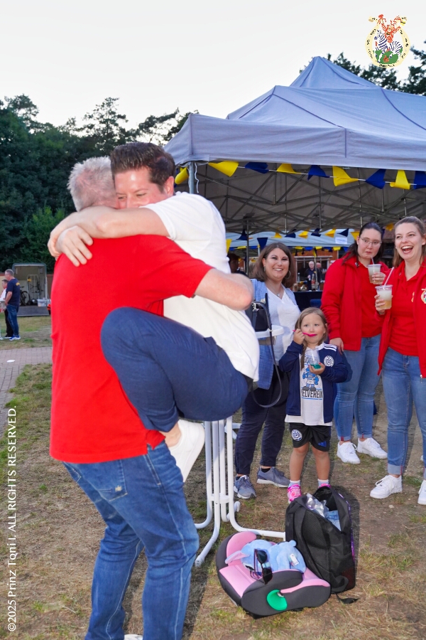 20 30. August, 4 mal Sommerfest - Das „Garde-Grillen“ der Duisburger Prinzengarde ist unser erstes Ziel an diesem Samstag in Duisburg-Meiderich. Danach geht es in den Süden Duisburgs, zur KG Sonniger-Süden. Auf ein kurzes Hallo geht es dann zur KG Rote Funken am Kalkweg. Von dort führt uns der Weg in den Westen Duisburgs. Die 1. KG Baerl Blau-Gelb e.V. feiert ihr Sommerfest auf dem Gelände des TUS Baerl. Das Heimspiel für Hofmarschall Thomas, dem Präsidenten der KG.