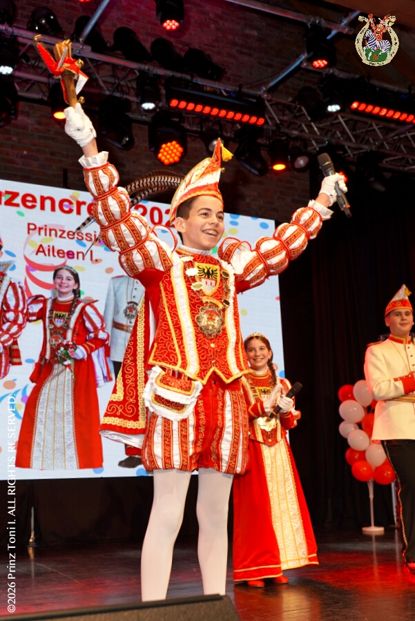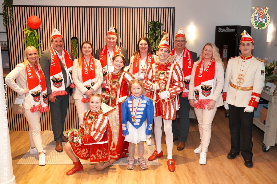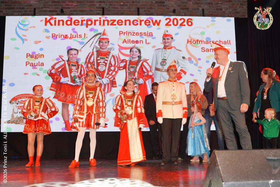 9 Kinderprinzencrew wurde gekürt - Es gehört schon zur Tradition, das am Sonntag vor der Inthronisierung des Stadtprinzen, die Kürzung der Kinderprinzencrew statt findet. Diesmal der 4. Januar 2026 und es gab eine Premiere. Im so genannten „Gürzenich“ von Duisburg, dem Steinhof in Huckingen, wurden Prinz Juls I., Prinzessin Aileen I. mit Hofmarschall Sami und Pagin Paula der Stadt Duisburg 2026 inthronisiert.