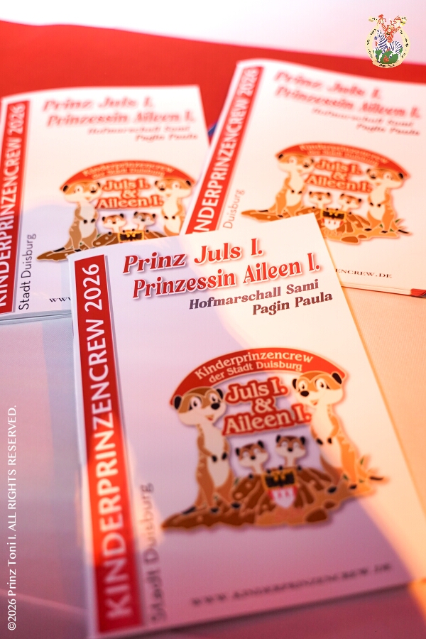 1 Kinderprinzencrew wurde gekürt - Es gehört schon zur Tradition, das am Sonntag vor der Inthronisierung des Stadtprinzen, die Kürzung der Kinderprinzencrew statt findet. Diesmal der 4. Januar 2026 und es gab eine Premiere. Im so genannten „Gürzenich“ von Duisburg, dem Steinhof in Huckingen, wurden Prinz Juls I., Prinzessin Aileen I. mit Hofmarschall Sami und Pagin Paula der Stadt Duisburg 2026 inthronisiert.