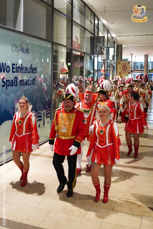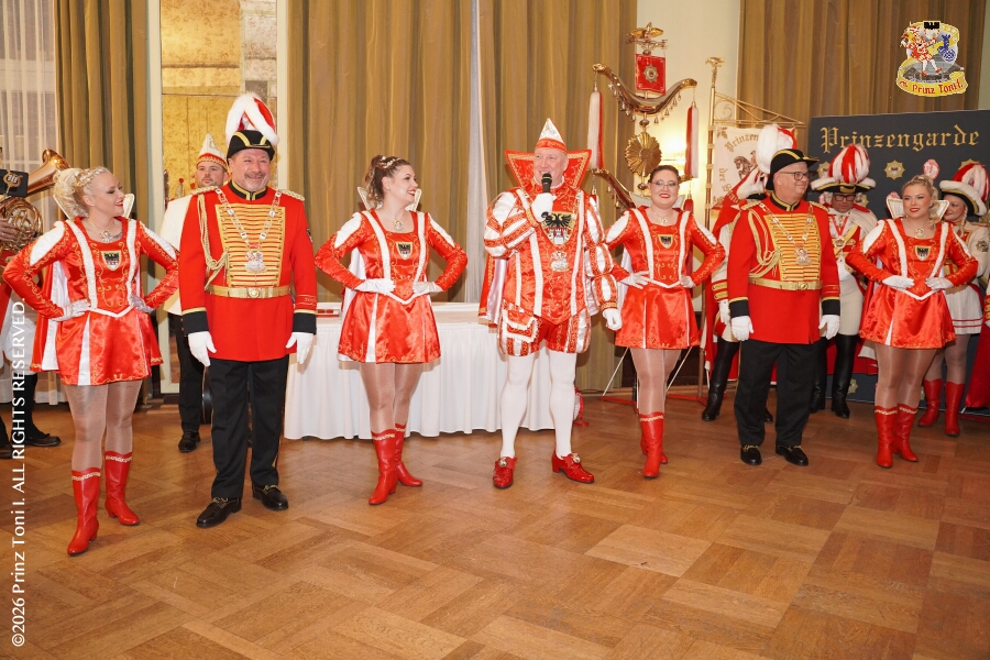 9 Endlich Karnevalsprinz: Toni I. - Am Samstag 10. Januar 2026 war es endlich soweit. Kürung se. Tollität Prinz Toni I., im Rahmen eines hochklassigen Galaabends in der ausverkauften Mercatorhalle in Duisburg. Ein stimmungsvoller Abend mit Show, Musik und Tanz. Vorab präsentierte sich die Prinzencrew 2026 im WYNDHAM Hotel Duisburger Hof der Leibgarde se. Tollität, die Prinzengarde der Stadt Duisburg.