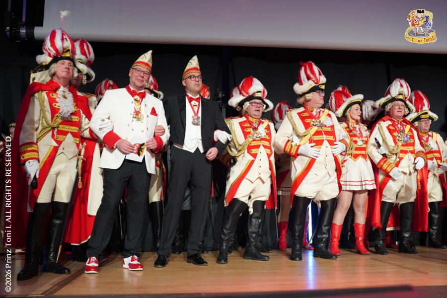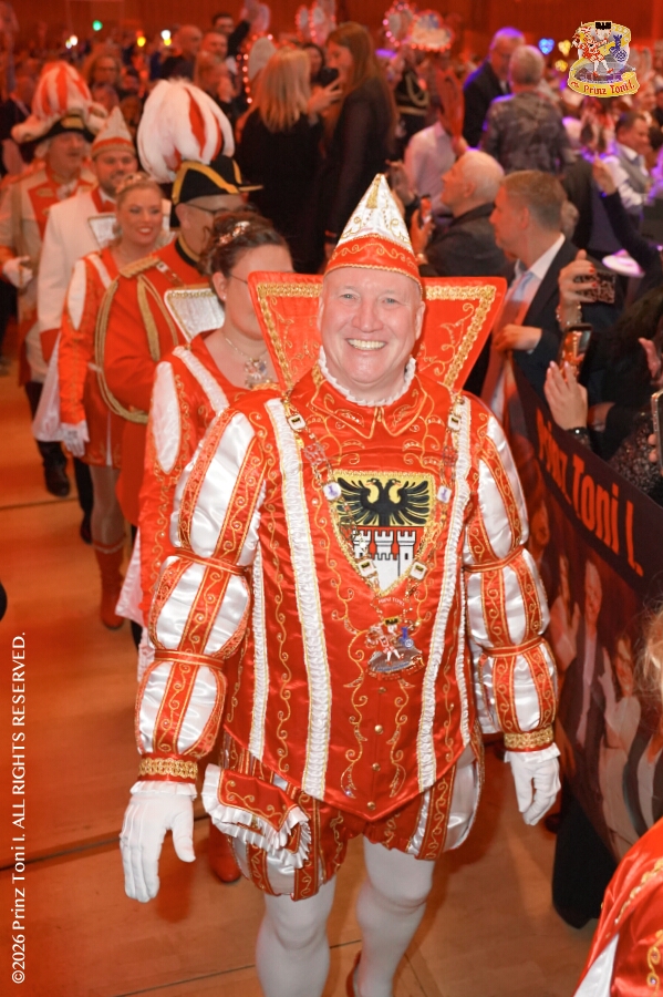 120 Endlich Karnevalsprinz: Toni I. - Am Samstag 10. Januar 2026 war es endlich soweit. Kürung se. Tollität Prinz Toni I., im Rahmen eines hochklassigen Galaabends in der ausverkauften Mercatorhalle in Duisburg. Ein stimmungsvoller Abend mit Show, Musik und Tanz. Vorab präsentierte sich die Prinzencrew 2026 im WYNDHAM Hotel Duisburger Hof der Leibgarde se. Tollität, die Prinzengarde der Stadt Duisburg.