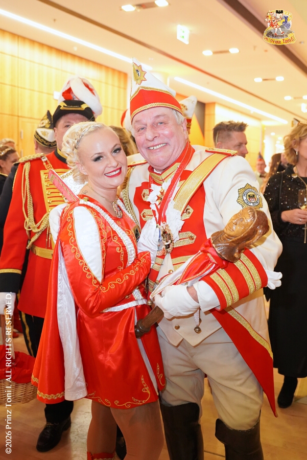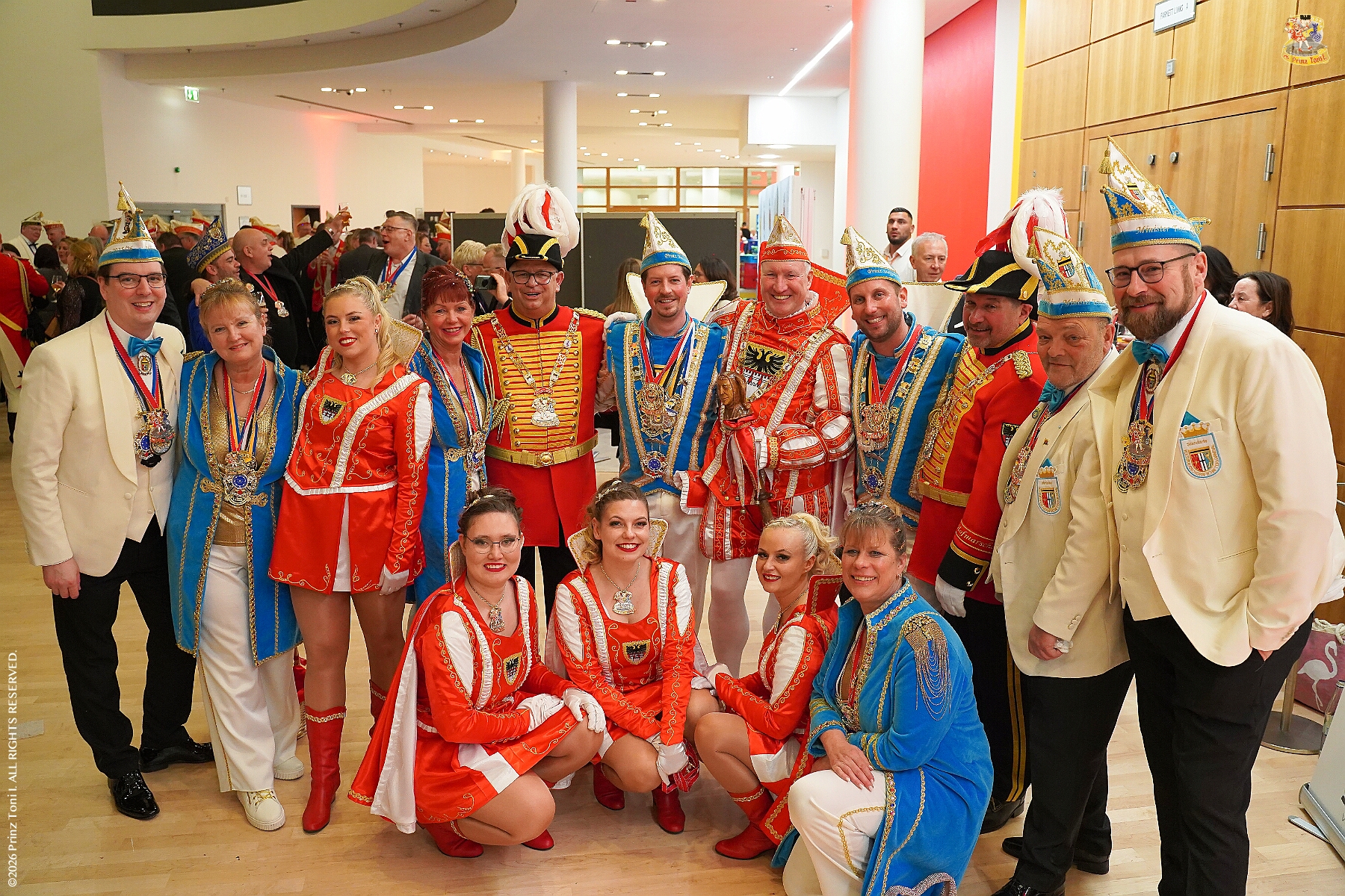 75 Endlich Karnevalsprinz: Toni I. - Am Samstag 10. Januar 2026 war es endlich soweit. Kürung se. Tollität Prinz Toni I., im Rahmen eines hochklassigen Galaabends in der ausverkauften Mercatorhalle in Duisburg. Ein stimmungsvoller Abend mit Show, Musik und Tanz. Vorab präsentierte sich die Prinzencrew 2026 im WYNDHAM Hotel Duisburger Hof der Leibgarde se. Tollität, die Prinzengarde der Stadt Duisburg.