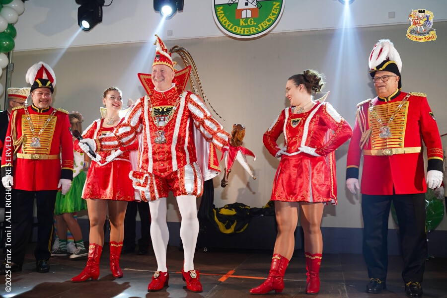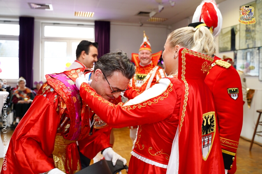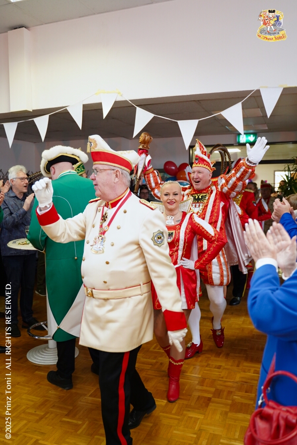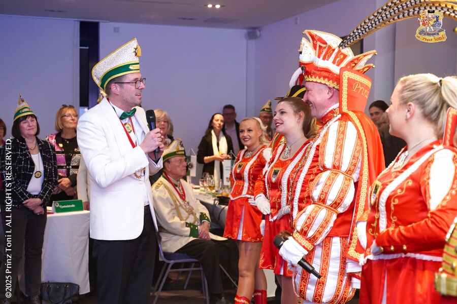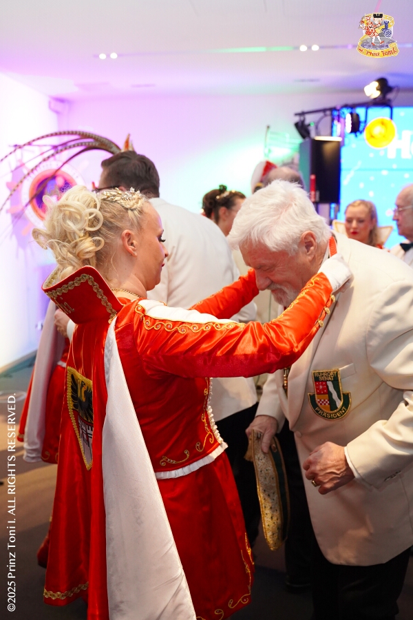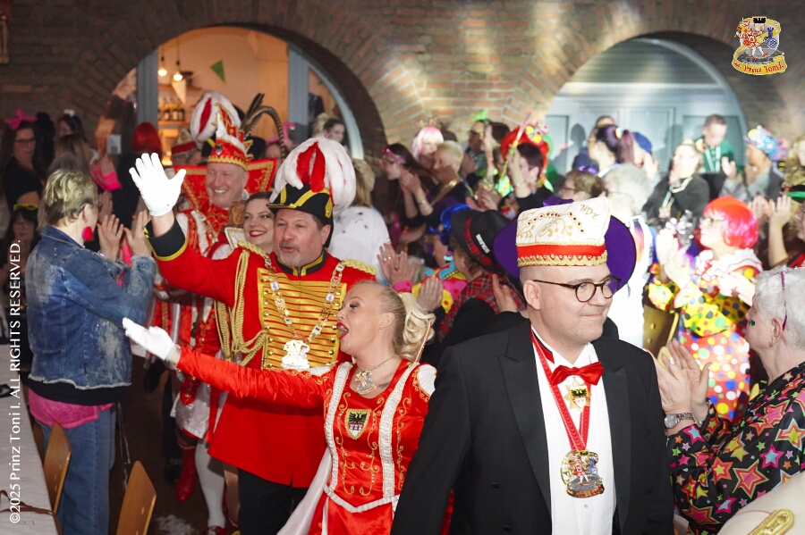 25 Tour-Tag, 30. Januar - An diesem Freitagmorgen hatte das Bezirksamt in Meiderich zum Prinzenempfang gebeten. Am Abend ging es dann weiter bei der „Damenparty“ der Marloher Jecken in Fahrn. Von dort in die „Eventloction BUDDY´S“ in Meiderich. Hier gab es eine Karnevalsparty mit DJ Holger, der ehemaligen Tollität Holger II. von 2025. Zum Abschluss waren wir Gäste beim „Ritterschmaus“ der KG Weiss-Grün in Ruhrort.