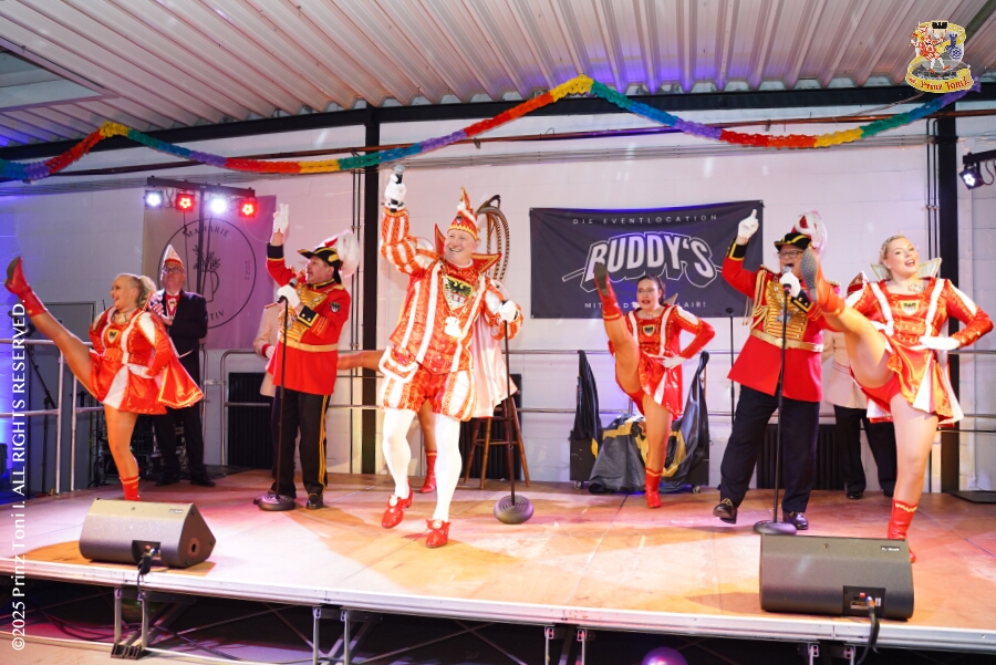 20 Tour-Tag, 30. Januar - An diesem Freitagmorgen hatte das Bezirksamt in Meiderich zum Prinzenempfang gebeten. Am Abend ging es dann weiter bei der „Damenparty“ der Marloher Jecken in Fahrn. Von dort in die „Eventloction BUDDY´S“ in Meiderich. Hier gab es eine Karnevalsparty mit DJ Holger, der ehemaligen Tollität Holger II. von 2025. Zum Abschluss waren wir Gäste beim „Ritterschmaus“ der KG Weiss-Grün in Ruhrort.