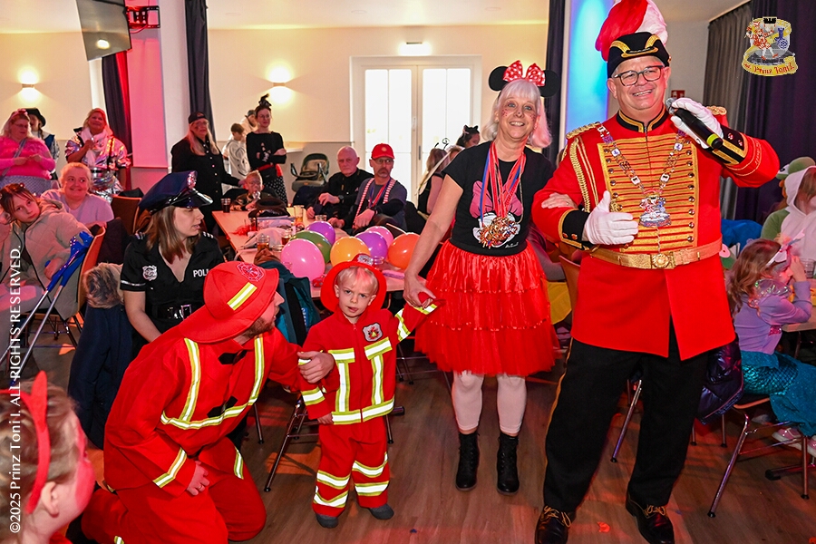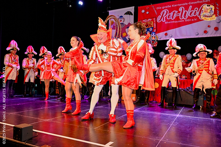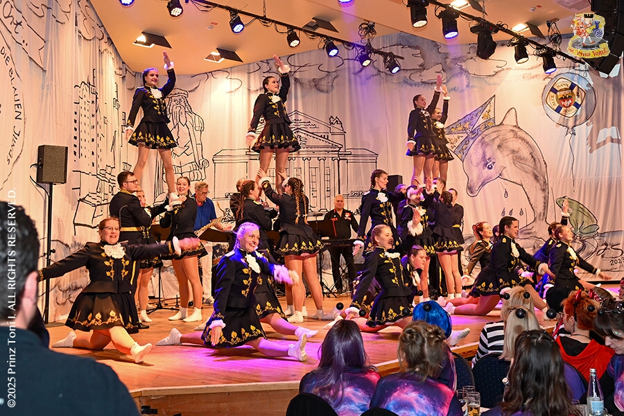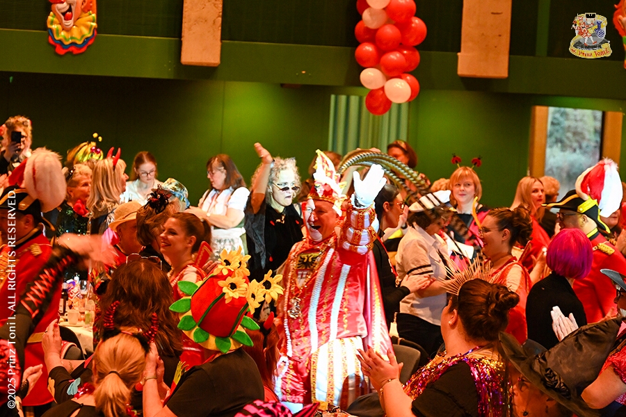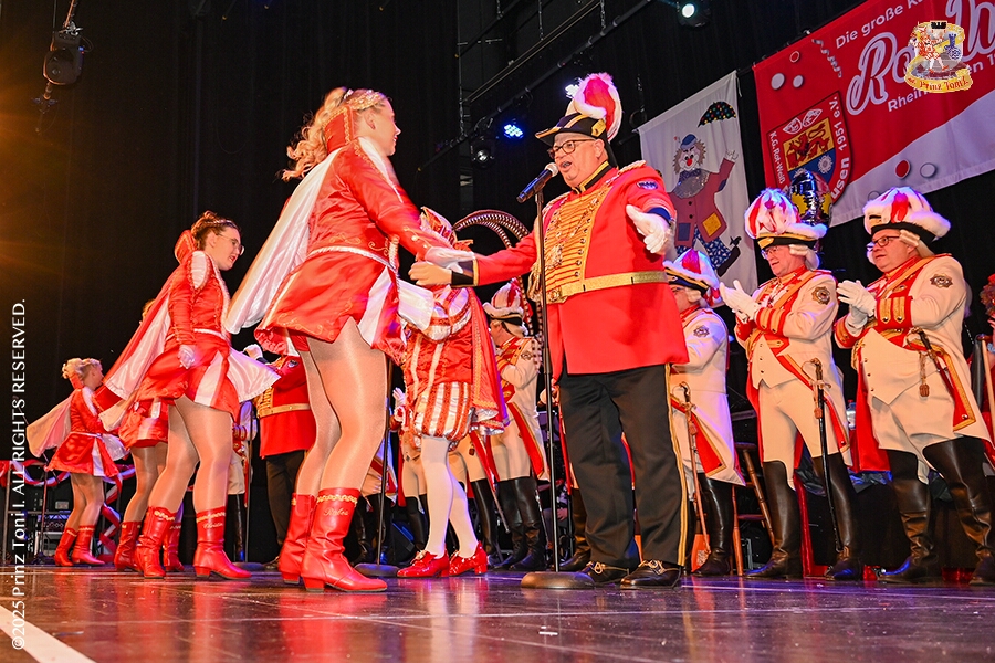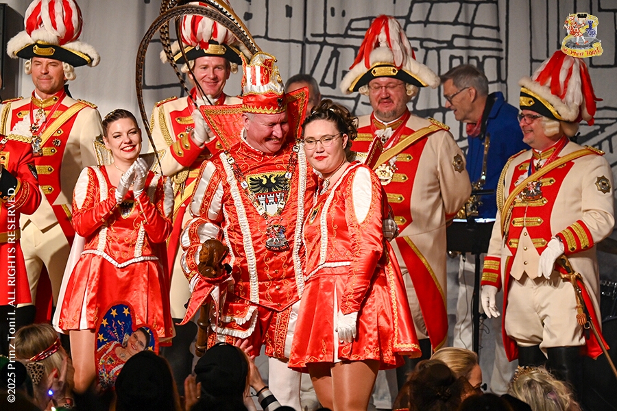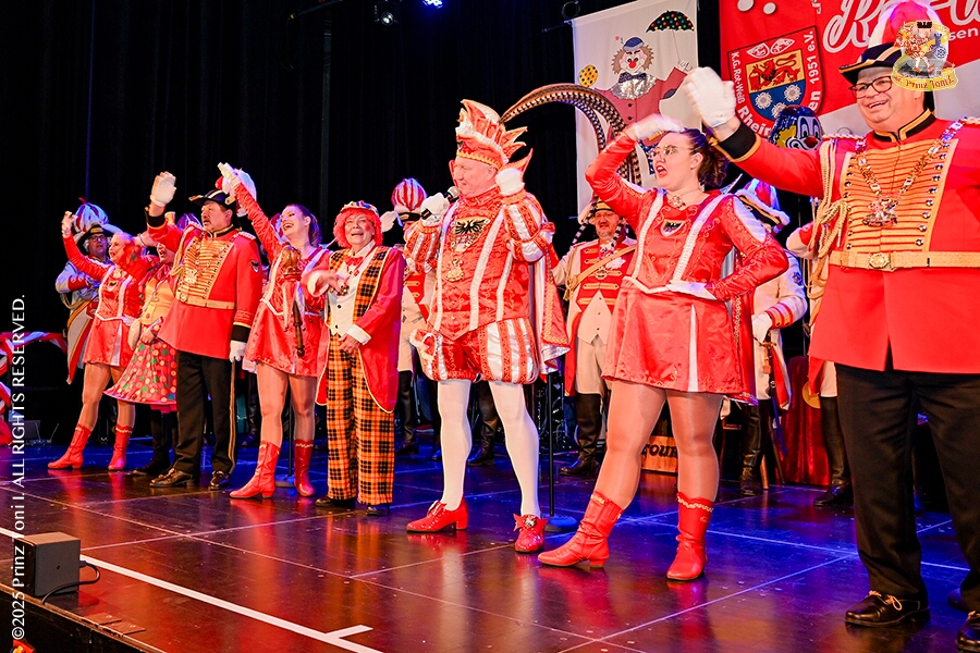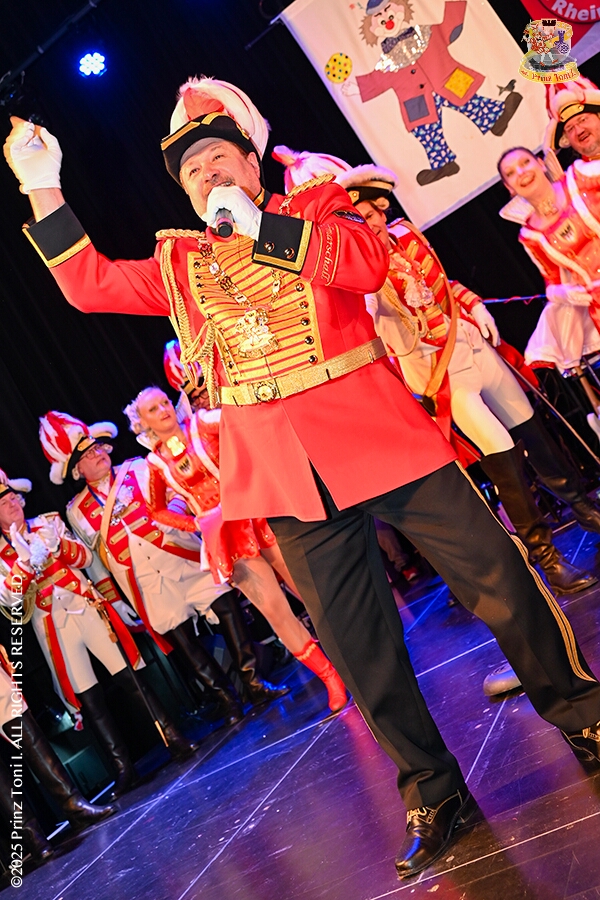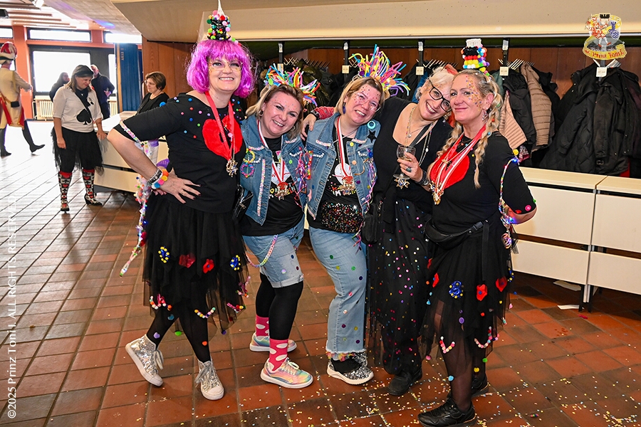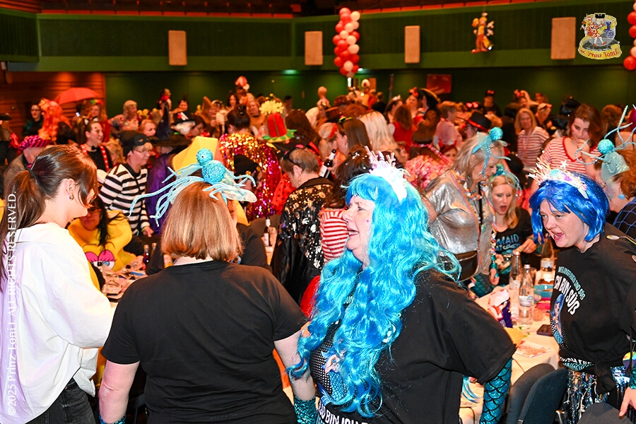 25 Tour-Tag, 1. Februar - Im Intercity Hotel feierten die Roten Funken ihr 77-jähriges Bestehen an diesem Sonntagmorgen, auch wir gratulierten. Auf zum Heimspiel für unsere Christin hieß es danach, dies bei der Damensitzung der » Blauen Jungs «. Eine große Kinderschar erwartete uns dann im Steinhof. Die Musketiere hielten dort ihre Kindersitzung ab. In die Rheinhausenhall führte uns dann der nächste Termin, Damensitzung von Rot-Weiß. Zum Schluß erwartete und die SPD Großenbaum/Rahm bei ihrem „Tanztee“ in unserem Stadquartier, dem Coupe 1900.