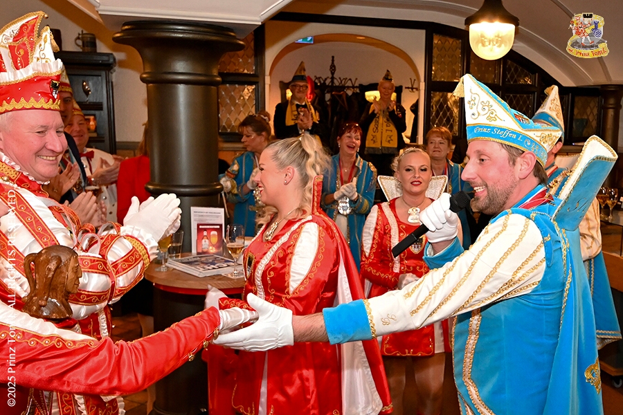 24 Prinzentreffen in der Brauerei - Auf Initiative von Tobias Ostermann, Verkaufsleiter Ruhrgebiet, und HDK Präsident Michel Jansen lud die König Brauerei in Kooperation mit dem HDK zum Prinzentreffen in den Theodor-König-Keller auf dem Gelände der König Brauerei. Dieser spontanen Einladung folgten die Tollitäten aus Essen, Oberhausen und Moers. Prinz Toni I. erwies sich als sympathischer Co-Gastgeber bei diesem unterhaltsamen Abend.