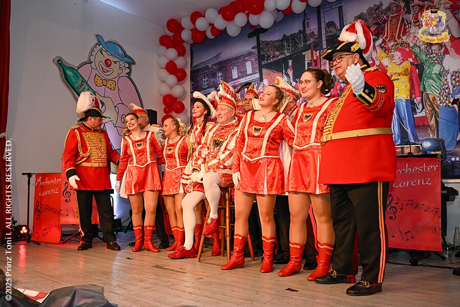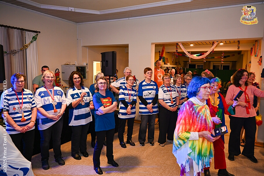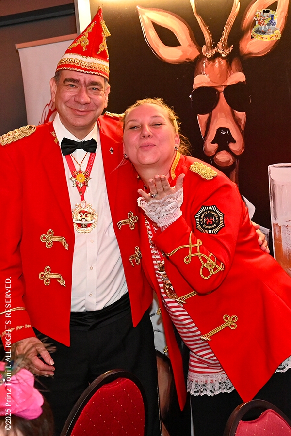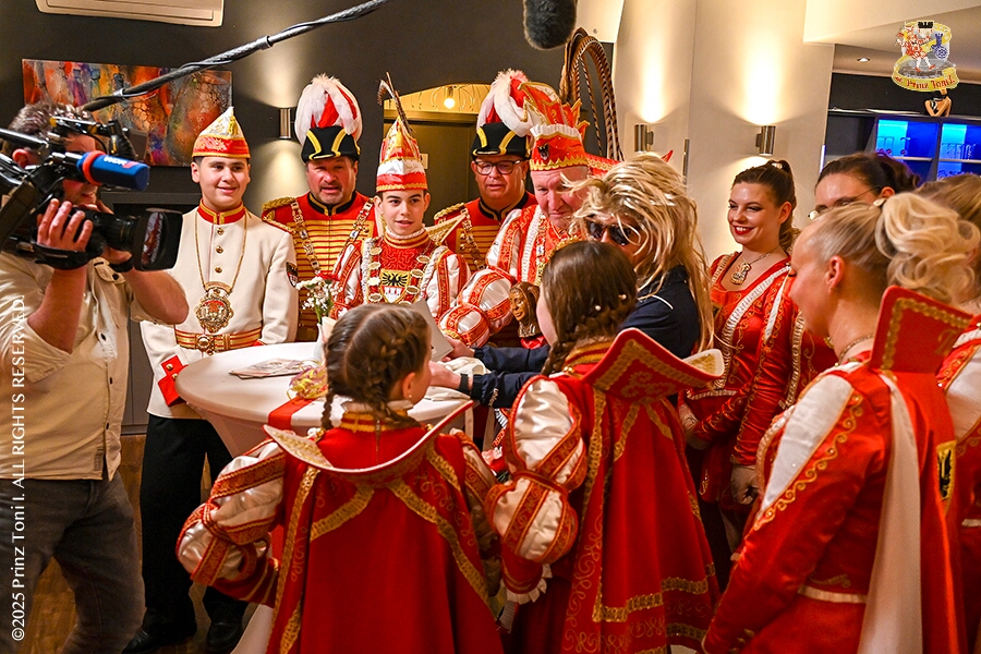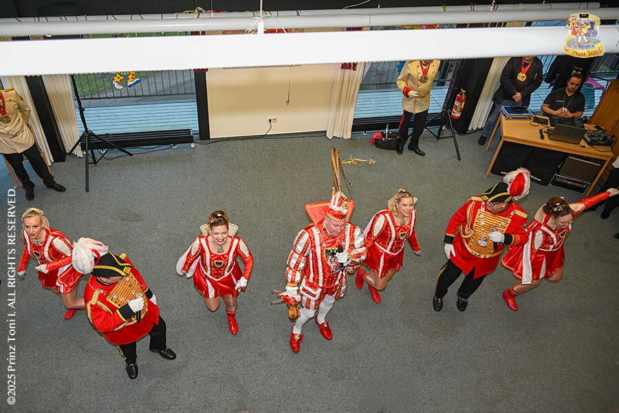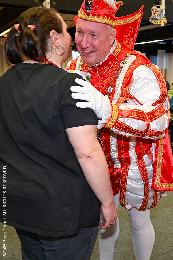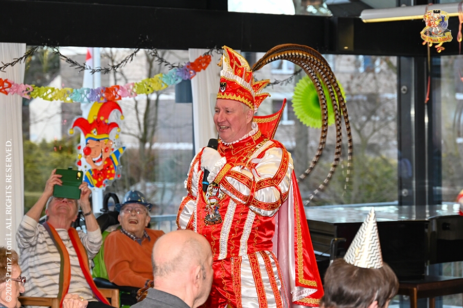 25 Seniorenkarneval und Flüstersitzung - An Nachmittag des 4. Februar führte uns der erste Termin in das DRK-Multikulturelle Seniorenzentrum Haus am Sandberg in Homberg. Zum 2. Termin musste wir in den Süden. In Huckingen feierte die KFD St. Peter und Paul Gemeinde ihren 2. karnvalistischen Nachmittag, Toni I. wurde ein Superstar empfangen. Gestärkt mit ausreichend Kuchen und Kaffee ging es dann nach Walsum. In Open Rheins „Zum Johanniter“ , dort fand die „Flüstersitzung“ der Prinzengarde statt.