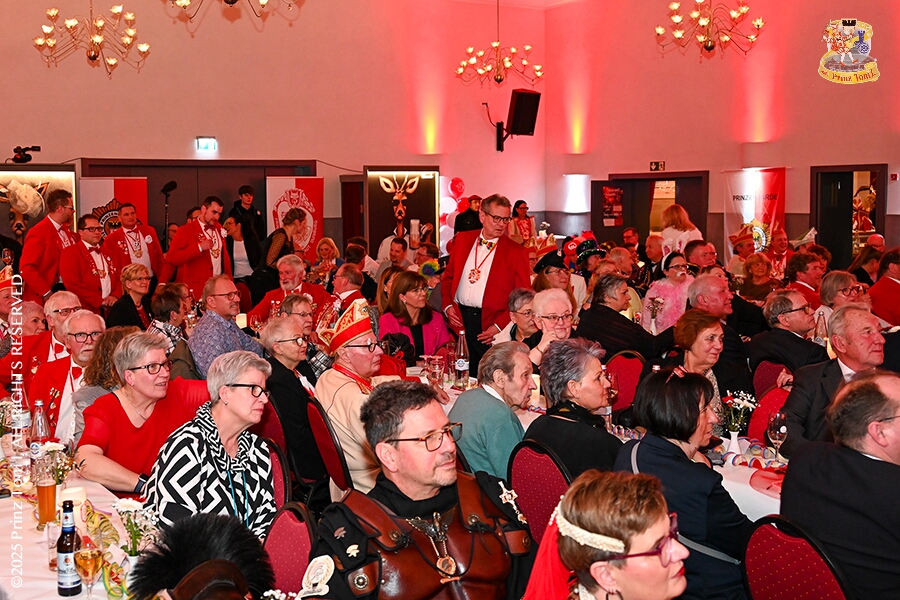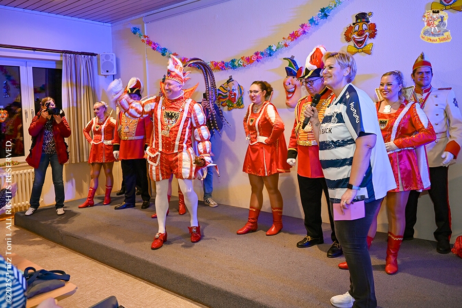 24 Seniorenkarneval und Flüstersitzung - An Nachmittag des 4. Februar führte uns der erste Termin in das DRK-Multikulturelle Seniorenzentrum Haus am Sandberg in Homberg. Zum 2. Termin musste wir in den Süden. In Huckingen feierte die KFD St. Peter und Paul Gemeinde ihren 2. karnvalistischen Nachmittag, Toni I. wurde ein Superstar empfangen. Gestärkt mit ausreichend Kuchen und Kaffee ging es dann nach Walsum. In Open Rheins „Zum Johanniter“ , dort fand die „Flüstersitzung“ der Prinzengarde statt.