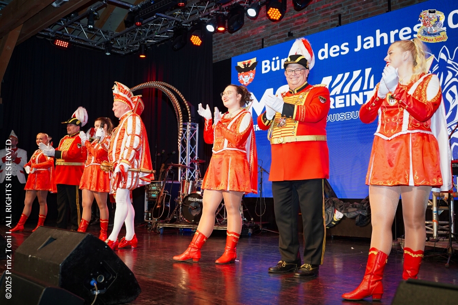 40 Tour-Tag, 11. Februar - An diesem Mittwoch hatten wir2 Termine mit der Kinderprinzencrew zusammen, einmal den Rathausempfang in Rheinhausen und das Wiegen bei der DEKRA. Nach dem Besuch im Studio 47 ging es in den Steinhof zum Abend für den Bürger des Jahres.
