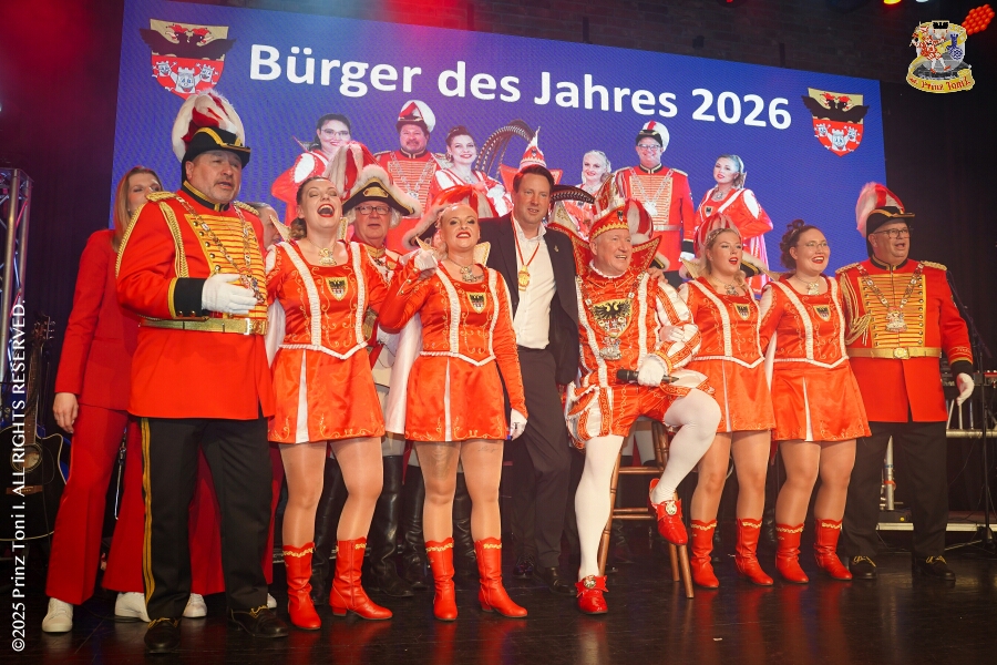26 Tour-Tag, 11. Februar - An diesem Mittwoch hatten wir2 Termine mit der Kinderprinzencrew zusammen, einmal den Rathausempfang in Rheinhausen und das Wiegen bei der DEKRA. Nach dem Besuch im Studio 47 ging es in den Steinhof zum Abend für den Bürger des Jahres.