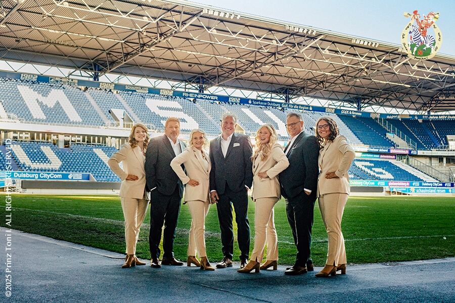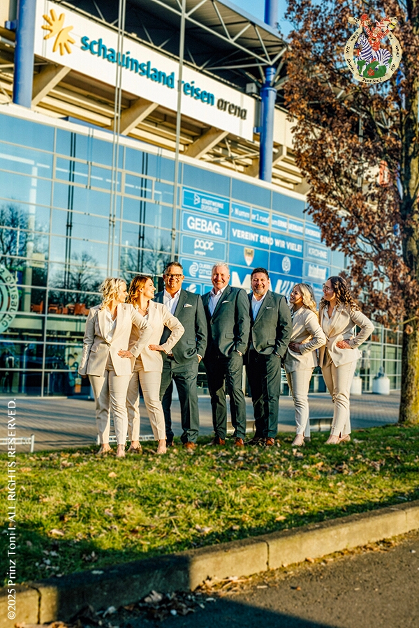 Wenn der des. Prinz, Toni I., schon MSV Mitglied ist, wo werden dann wohl die ersten offiziellen Fotos der Crew gemacht. Na klar, in seinem „Wohnzimmer“ in der schauinsland Reisen Arena.