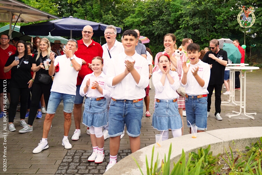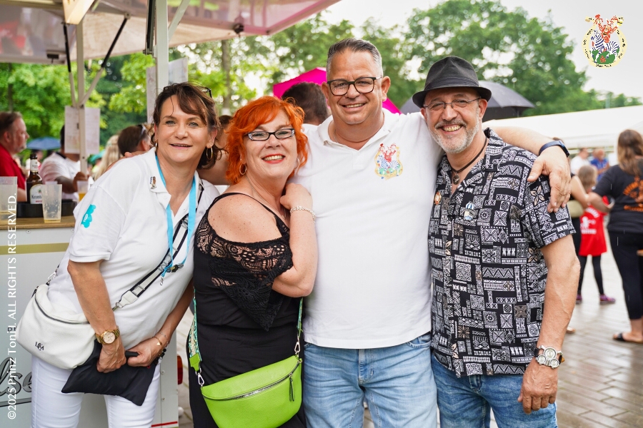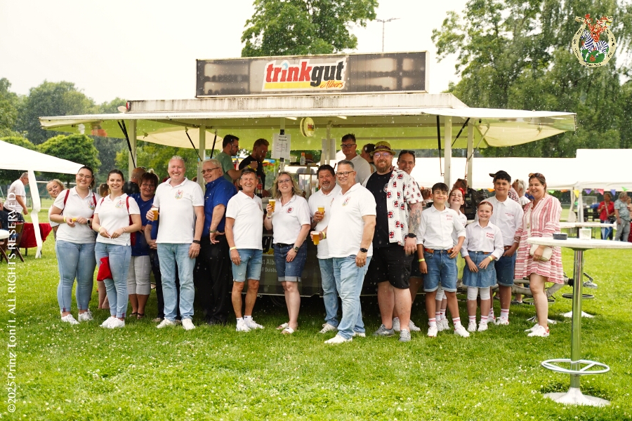24 Ein schöner und warmer Tag, der 14. Juni - Der Startschuss zur Samstagstour fiel um Mittagszeit im Innenhafen. Wir besuchten die 24. Duisburger Drachenboot Fun-Regatta. Daumen drücken für die Aqua-Garde, ein Boot voller Karnevalisten. Danach besuchten wir das 2. Sommerfest KG Schottenzunft Dusiburg auf der Sportanlage des ETUS Bissingheim. Beim dritten Termin, das Sommerfest der Grafschafter Funken auf dem Quartiersplatz in Moers-Asberg, wurde es ein wenig feucht von Oben, „Abkühlung“. Zurück in Serm überraschten wir Rita und Peter Ambrosius auf der Feier ihre goldenen Hochzeit.
