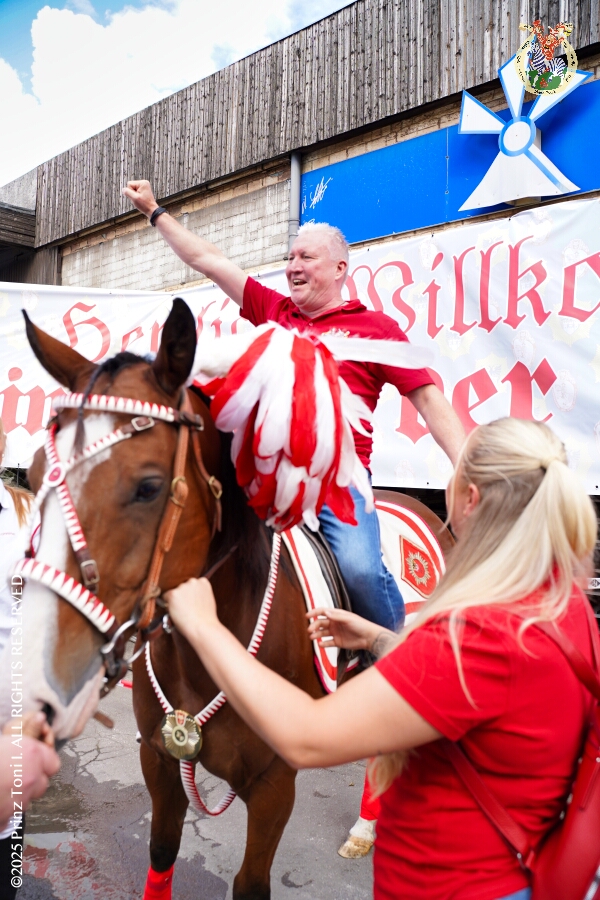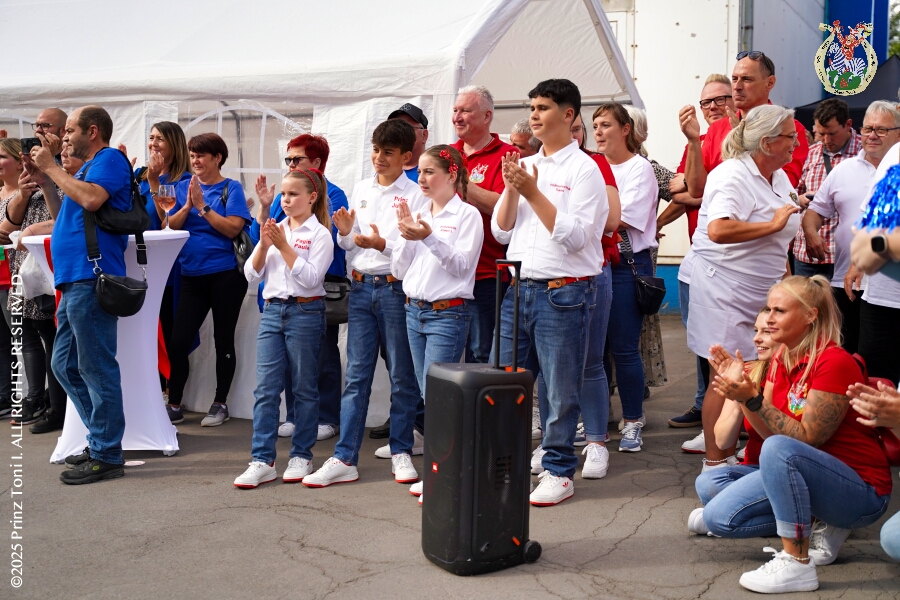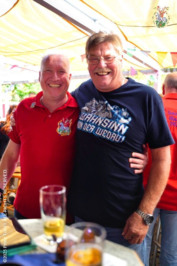 Das „Garde-Grillen“ der Duisburger Prinzengarde ist unser erstes Ziel an diesem Samstag in Duisburg-Meiderich. Danach geht es in den Süden Duisburgs, zur KG Sonniger-Süden. Auf ein kurzes Hallo geht es dann zur KG Rote Funken am Kalkweg. Von dort führt uns der Weg in den Westen Duisburgs. Die 1. KG Baerl Blau-Gelb e.V. feiert ihr Sommerfest auf dem Gelände des TUS Baerl. Das Heimspiel für Hofmarschall Thomas, dem Präsidenten der KG.