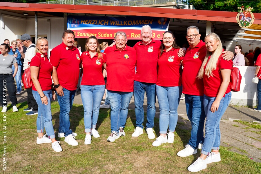 40 30. August, 4 mal Sommerfest - Das „Garde-Grillen“ der Duisburger Prinzengarde ist unser erstes Ziel an diesem Samstag in Duisburg-Meiderich. Danach geht es in den Süden Duisburgs, zur KG Sonniger-Süden. Auf ein kurzes Hallo geht es dann zur KG Rote Funken am Kalkweg. Von dort führt uns der Weg in den Westen Duisburgs. Die 1. KG Baerl Blau-Gelb e.V. feiert ihr Sommerfest auf dem Gelände des TUS Baerl. Das Heimspiel für Hofmarschall Thomas, dem Präsidenten der KG.