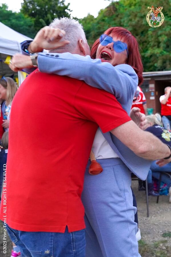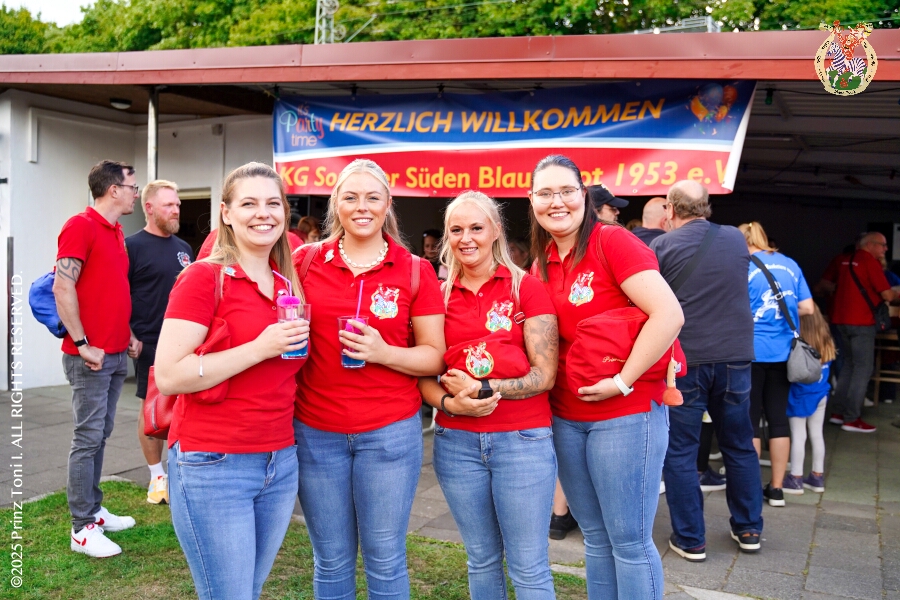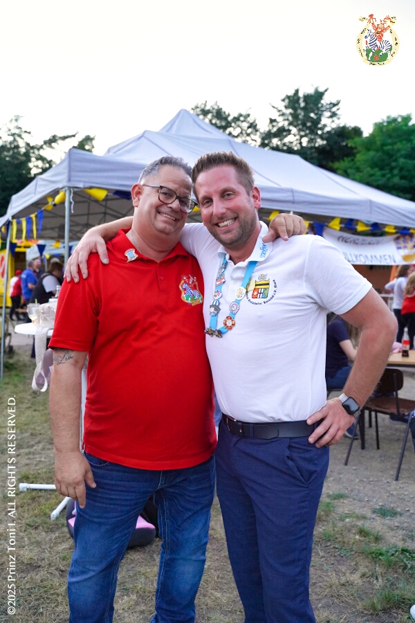 20 30. August, 4 mal Sommerfest - Das „Garde-Grillen“ der Duisburger Prinzengarde ist unser erstes Ziel an diesem Samstag in Duisburg-Meiderich. Danach geht es in den Süden Duisburgs, zur KG Sonniger-Süden. Auf ein kurzes Hallo geht es dann zur KG Rote Funken am Kalkweg. Von dort führt uns der Weg in den Westen Duisburgs. Die 1. KG Baerl Blau-Gelb e.V. feiert ihr Sommerfest auf dem Gelände des TUS Baerl. Das Heimspiel für Hofmarschall Thomas, dem Präsidenten der KG.