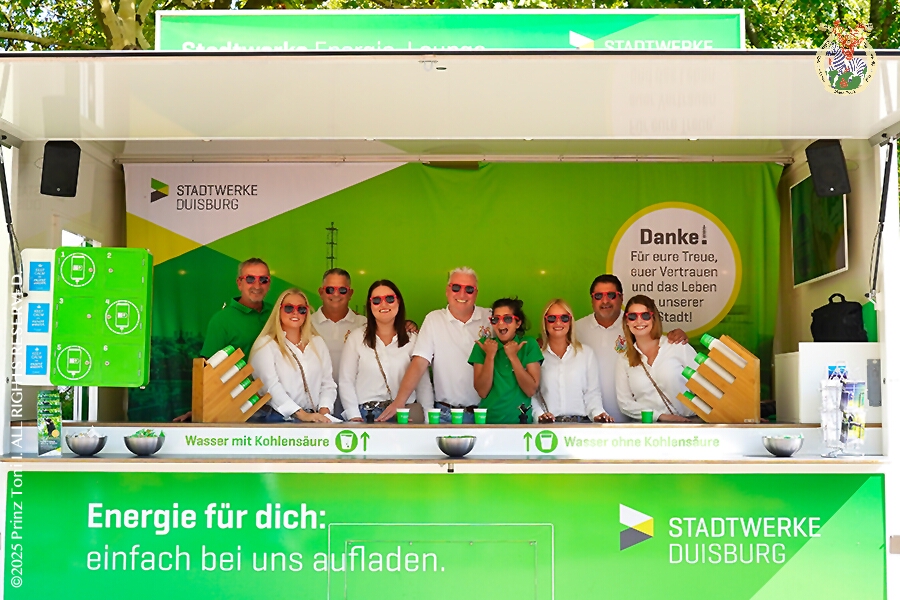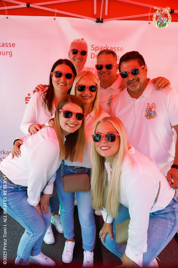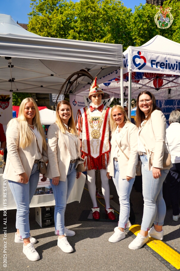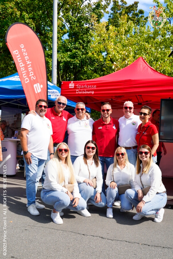 24 Samstags-Tour, 6. September - Ein Samstag voller Abwechslung. Der erste Termin, „Tag der Demokratie“, war auf dem Burgplatz. Eine Veranstaltung der Stadt Duisburg, dem HDK und diversen Organisationen aus der Stadt. Danach hieß es „Herzlichen Glückwunsch zum 80. Geburtstag“ liebe Irma. Danach ging es zur Platzanlage des TUS Viktoria 06 in Buchholz zum Benefiz-Spiel gegen die Traditionsmannschaft von Schalke 04. Im Sermer „Landgasthof-Schenke“ trafen wir den Elferrat der KG Südstern und wir sagten Hallo bei den „Sermer Damenstößchen“. Abschluss des Tages war dann auf dem 40. Geburtstag von Christian in der „MaRa Event Location“.