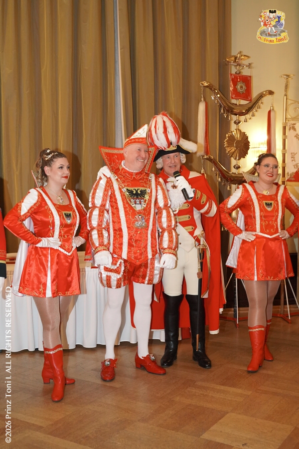 4 Endlich Karnevalsprinz: Toni I. - Am Samstag 10. Januar 2026 war es endlich soweit. Kürung se. Tollität Prinz Toni I., im Rahmen eines hochklassigen Galaabends in der ausverkauften Mercatorhalle in Duisburg. Ein stimmungsvoller Abend mit Show, Musik und Tanz. Vorab präsentierte sich die Prinzencrew 2026 im WYNDHAM Hotel Duisburger Hof der Leibgarde se. Tollität, die Prinzengarde der Stadt Duisburg.