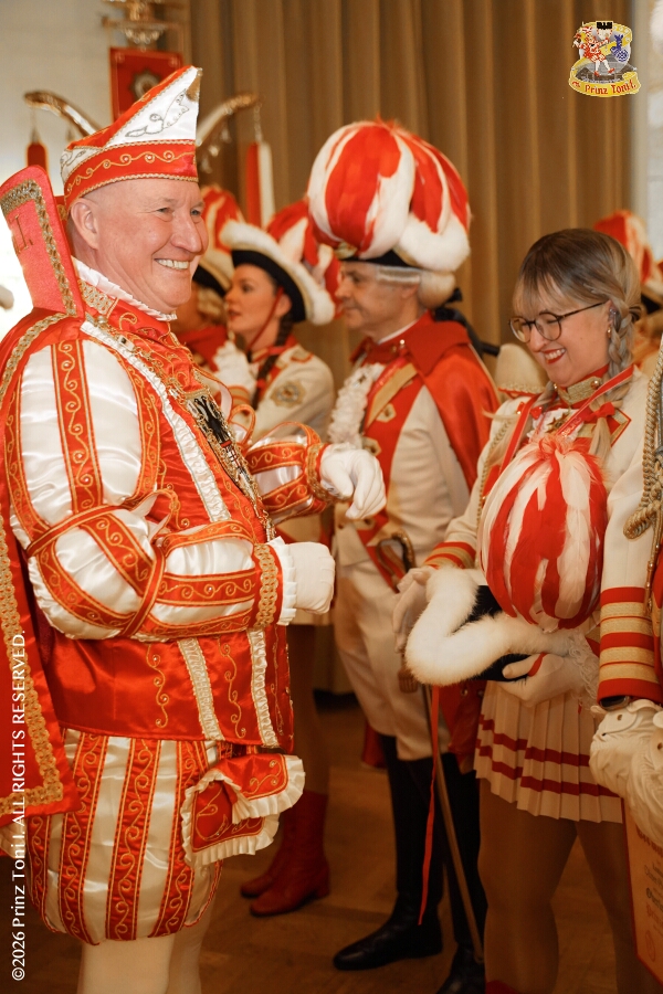 75 Endlich Karnevalsprinz: Toni I. - Am Samstag 10. Januar 2026 war es endlich soweit. Kürung se. Tollität Prinz Toni I., im Rahmen eines hochklassigen Galaabends in der ausverkauften Mercatorhalle in Duisburg. Ein stimmungsvoller Abend mit Show, Musik und Tanz. Vorab präsentierte sich die Prinzencrew 2026 im WYNDHAM Hotel Duisburger Hof der Leibgarde se. Tollität, die Prinzengarde der Stadt Duisburg.