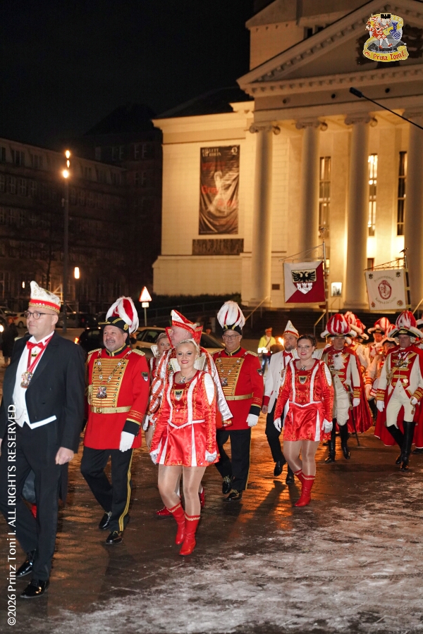 51 Endlich Karnevalsprinz: Toni I. - Am Samstag 10. Januar 2026 war es endlich soweit. Kürung se. Tollität Prinz Toni I., im Rahmen eines hochklassigen Galaabends in der ausverkauften Mercatorhalle in Duisburg. Ein stimmungsvoller Abend mit Show, Musik und Tanz. Vorab präsentierte sich die Prinzencrew 2026 im WYNDHAM Hotel Duisburger Hof der Leibgarde se. Tollität, die Prinzengarde der Stadt Duisburg.