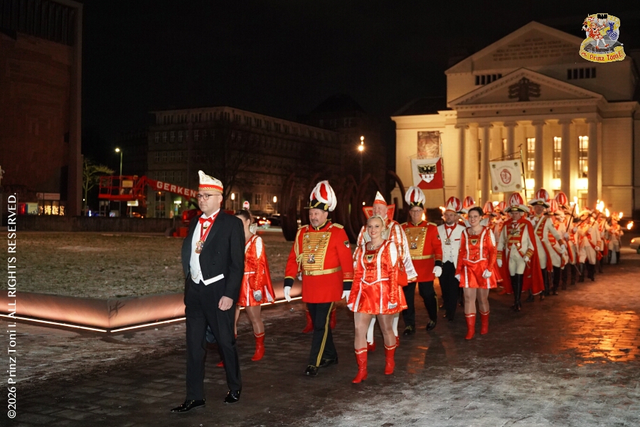 30 Endlich Karnevalsprinz: Toni I. - Am Samstag 10. Januar 2026 war es endlich soweit. Kürung se. Tollität Prinz Toni I., im Rahmen eines hochklassigen Galaabends in der ausverkauften Mercatorhalle in Duisburg. Ein stimmungsvoller Abend mit Show, Musik und Tanz. Vorab präsentierte sich die Prinzencrew 2026 im WYNDHAM Hotel Duisburger Hof der Leibgarde se. Tollität, die Prinzengarde der Stadt Duisburg.