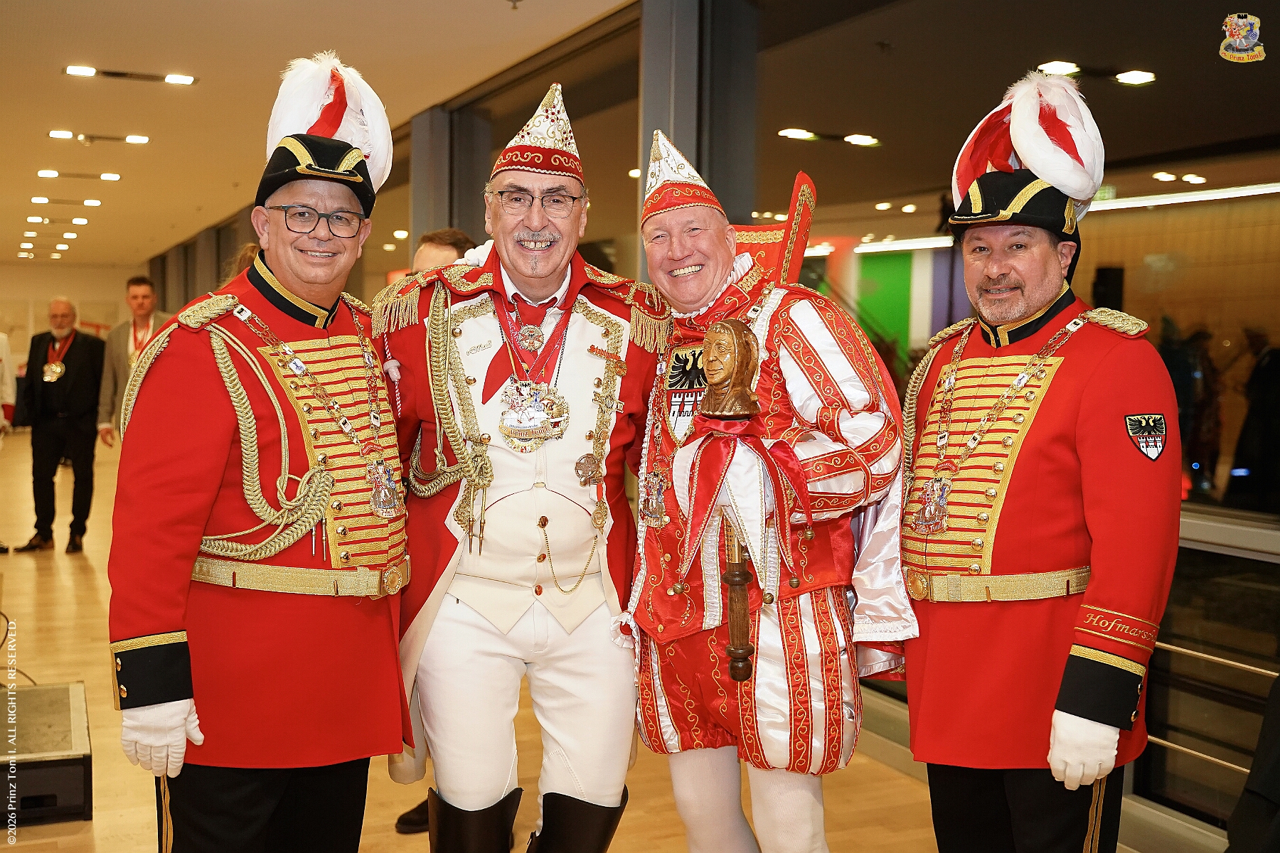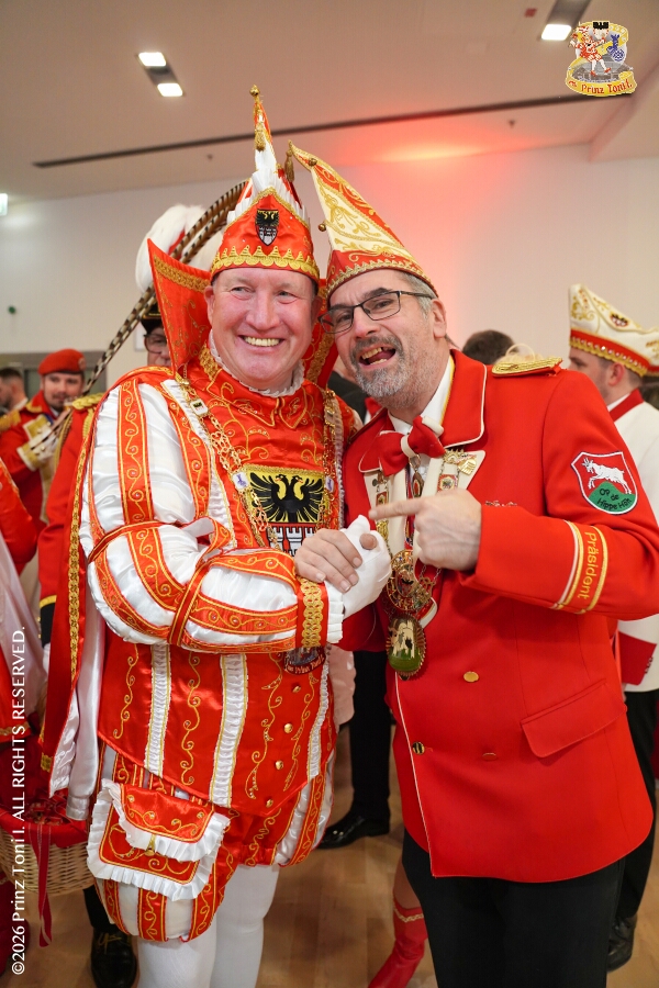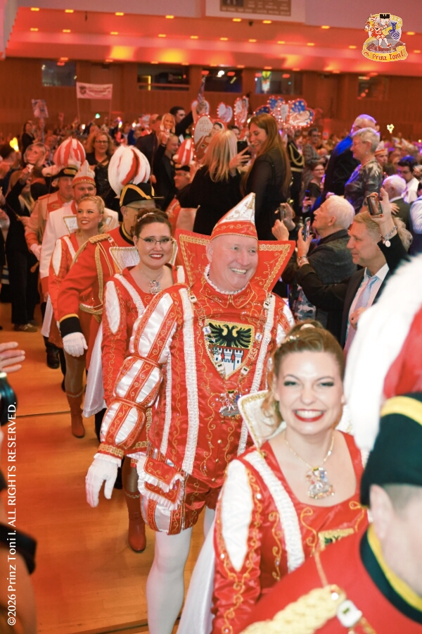 120 Endlich Karnevalsprinz: Toni I. - Am Samstag 10. Januar 2026 war es endlich soweit. Kürung se. Tollität Prinz Toni I., im Rahmen eines hochklassigen Galaabends in der ausverkauften Mercatorhalle in Duisburg. Ein stimmungsvoller Abend mit Show, Musik und Tanz. Vorab präsentierte sich die Prinzencrew 2026 im WYNDHAM Hotel Duisburger Hof der Leibgarde se. Tollität, die Prinzengarde der Stadt Duisburg.
