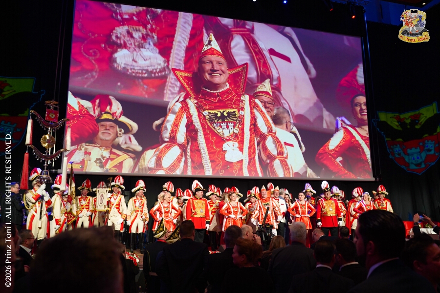 100 Endlich Karnevalsprinz: Toni I. - Am Samstag 10. Januar 2026 war es endlich soweit. Kürung se. Tollität Prinz Toni I., im Rahmen eines hochklassigen Galaabends in der ausverkauften Mercatorhalle in Duisburg. Ein stimmungsvoller Abend mit Show, Musik und Tanz. Vorab präsentierte sich die Prinzencrew 2026 im WYNDHAM Hotel Duisburger Hof der Leibgarde se. Tollität, die Prinzengarde der Stadt Duisburg.