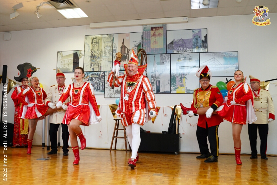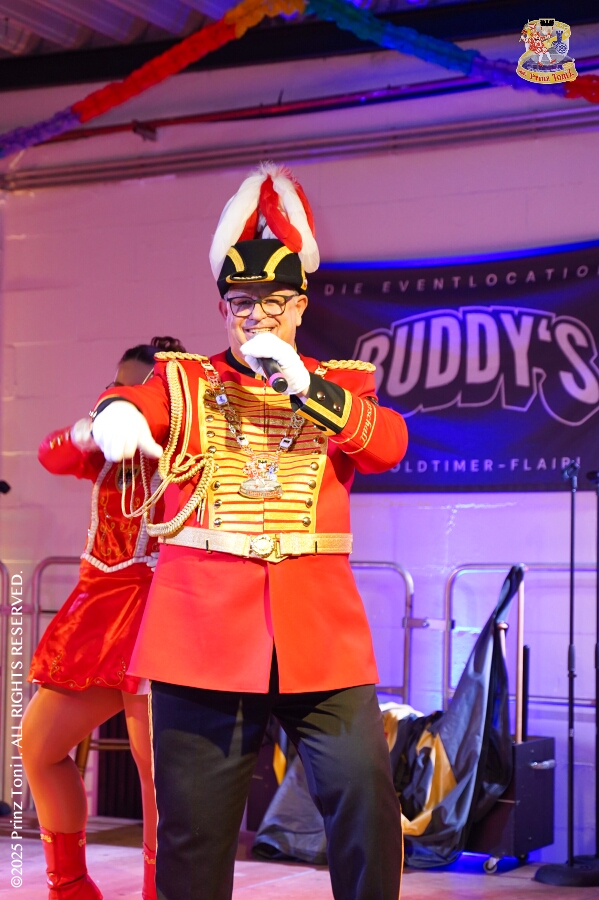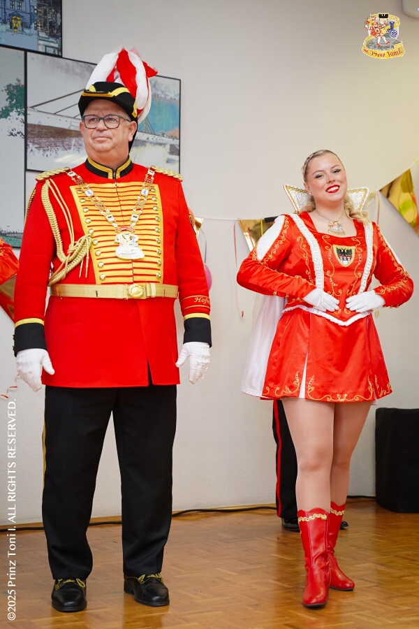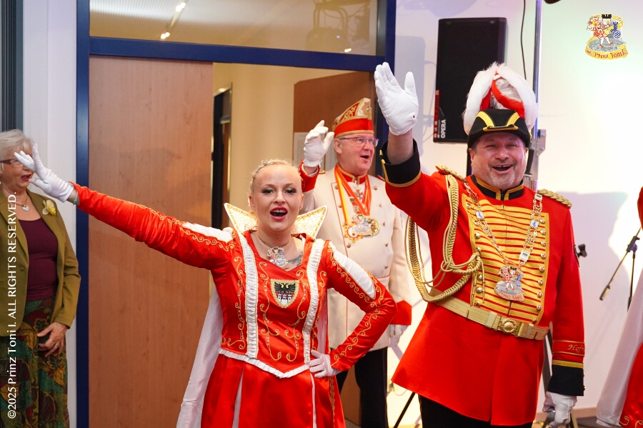25 Tour-Tag, 30. Januar - An diesem Freitagmorgen hatte das Bezirksamt in Meiderich zum Prinzenempfang gebeten. Am Abend ging es dann weiter bei der „Damenparty“ der Marloher Jecken in Fahrn. Von dort in die „Eventloction BUDDY´S“ in Meiderich. Hier gab es eine Karnevalsparty mit DJ Holger, der ehemaligen Tollität Holger II. von 2025. Zum Abschluss waren wir Gäste beim „Ritterschmaus“ der KG Weiss-Grün in Ruhrort.