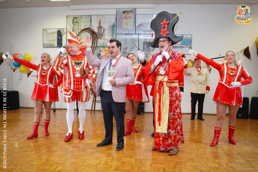 8 Tour-Tag, 30. Januar - An diesem Freitagmorgen hatte das Bezirksamt in Meiderich zum Prinzenempfang gebeten. Am Abend ging es dann weiter bei der „Damenparty“ der Marloher Jecken in Fahrn. Von dort in die „Eventloction BUDDY´S“ in Meiderich. Hier gab es eine Karnevalsparty mit DJ Holger, der ehemaligen Tollität Holger II. von 2025. Zum Abschluss waren wir Gäste beim „Ritterschmaus“ der KG Weiss-Grün in Ruhrort.