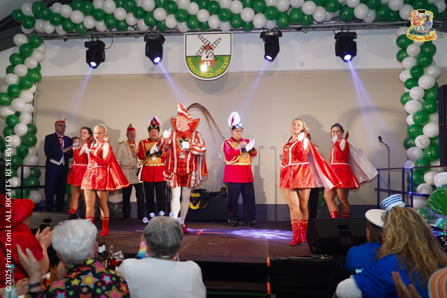 20 Tour-Tag, 30. Januar - An diesem Freitagmorgen hatte das Bezirksamt in Meiderich zum Prinzenempfang gebeten. Am Abend ging es dann weiter bei der „Damenparty“ der Marloher Jecken in Fahrn. Von dort in die „Eventloction BUDDY´S“ in Meiderich. Hier gab es eine Karnevalsparty mit DJ Holger, der ehemaligen Tollität Holger II. von 2025. Zum Abschluss waren wir Gäste beim „Ritterschmaus“ der KG Weiss-Grün in Ruhrort.