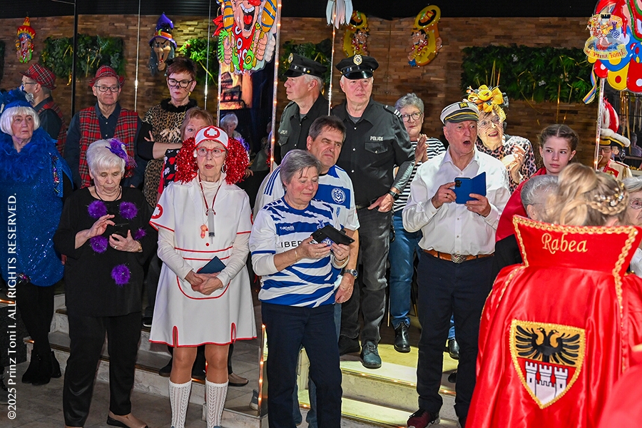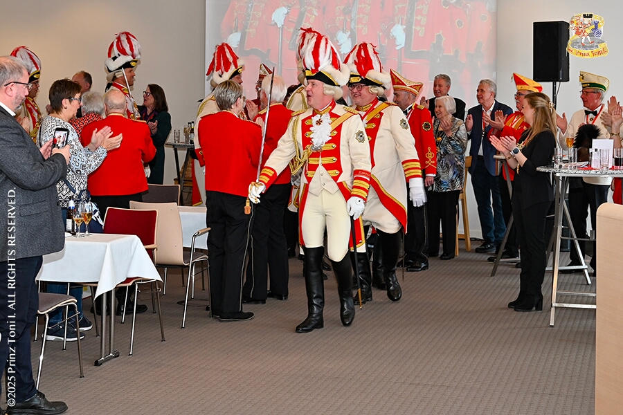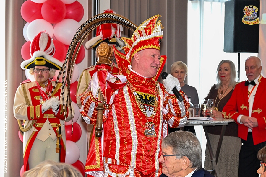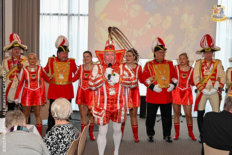 Im Intercity Hotel feierten die Roten Funken ihr 77-jähriges Bestehen an diesem Sonntagmorgen, auch wir gratulierten. Auf zum Heimspiel für unsere Christin hieß es danach, dies bei der Damensitzung der » Blauen Jungs «. Eine große Kinderschar erwartete uns dann im Steinhof. Die Musketiere hielten dort ihre Kindersitzung ab. In die Rheinhausenhall führte uns dann der nächste Termin, Damensitzung von Rot-Weiß. Zum Schluß erwartete und die SPD Großenbaum/Rahm bei ihrem „Tanztee“ in unserem Stadquartier, dem Coupe 1900.