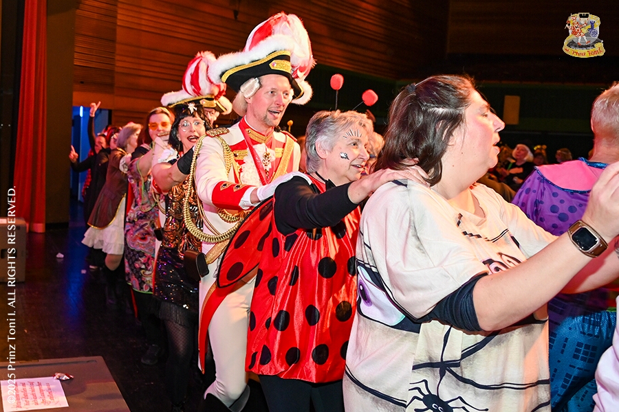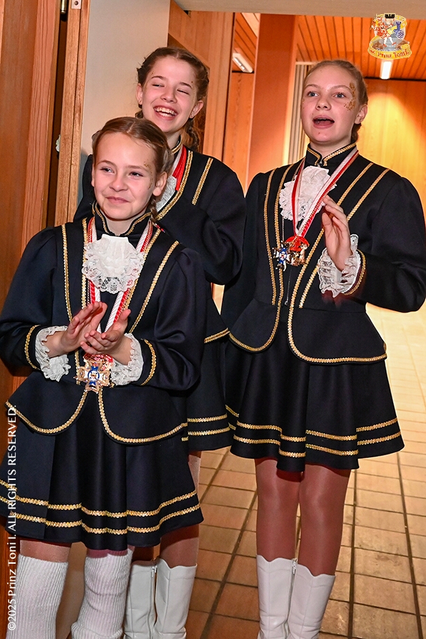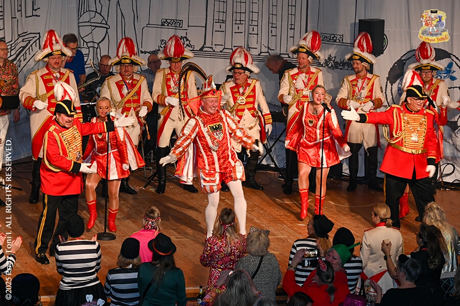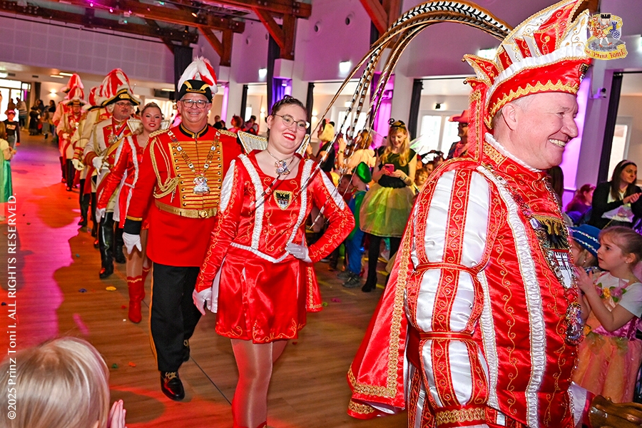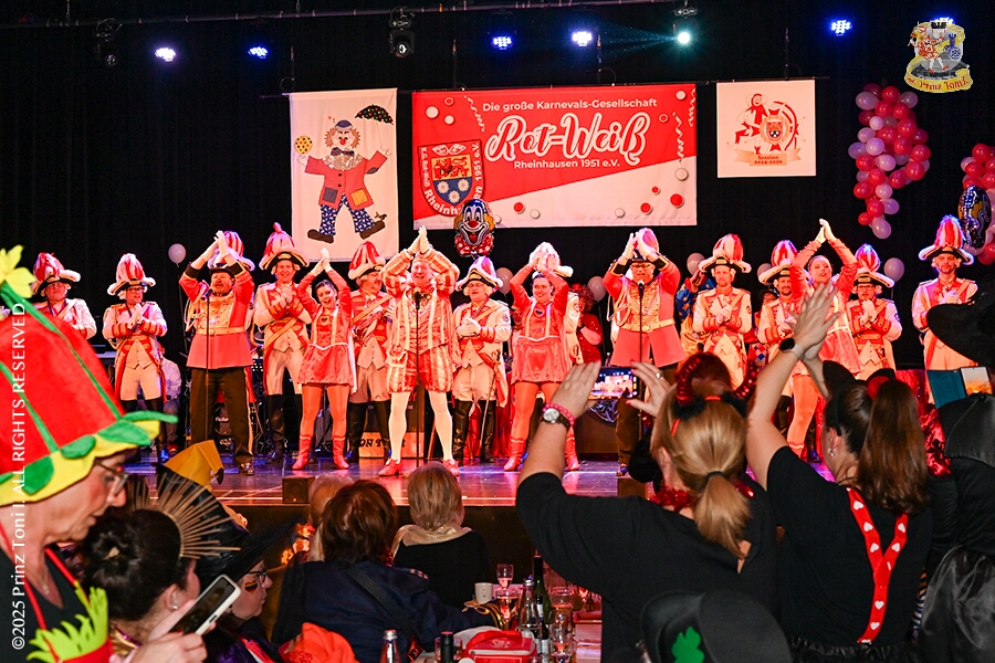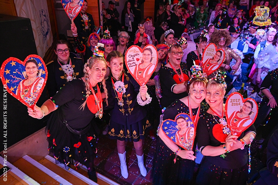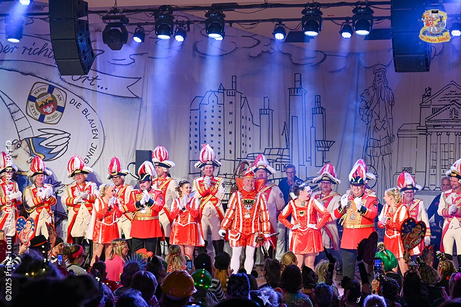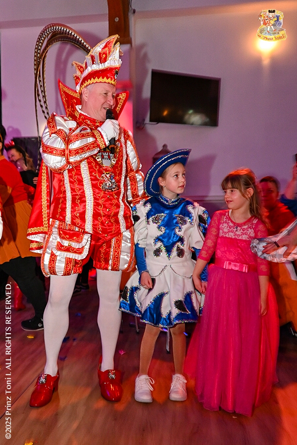 25 Tour-Tag, 1. Februar - Im Intercity Hotel feierten die Roten Funken ihr 77-jähriges Bestehen an diesem Sonntagmorgen, auch wir gratulierten. Auf zum Heimspiel für unsere Christin hieß es danach, dies bei der Damensitzung der » Blauen Jungs «. Eine große Kinderschar erwartete uns dann im Steinhof. Die Musketiere hielten dort ihre Kindersitzung ab. In die Rheinhausenhall führte uns dann der nächste Termin, Damensitzung von Rot-Weiß. Zum Schluß erwartete und die SPD Großenbaum/Rahm bei ihrem „Tanztee“ in unserem Stadquartier, dem Coupe 1900.