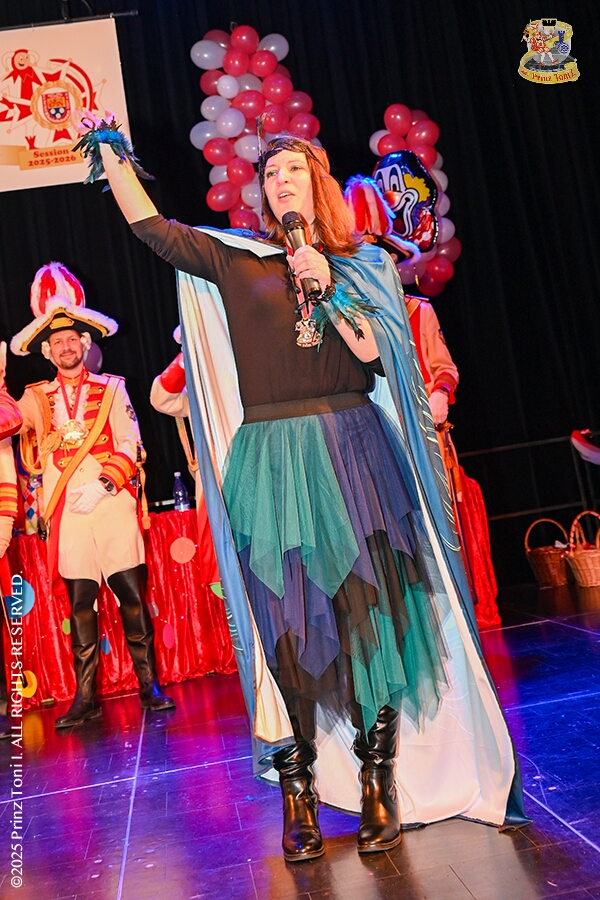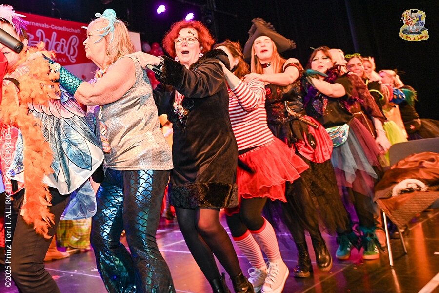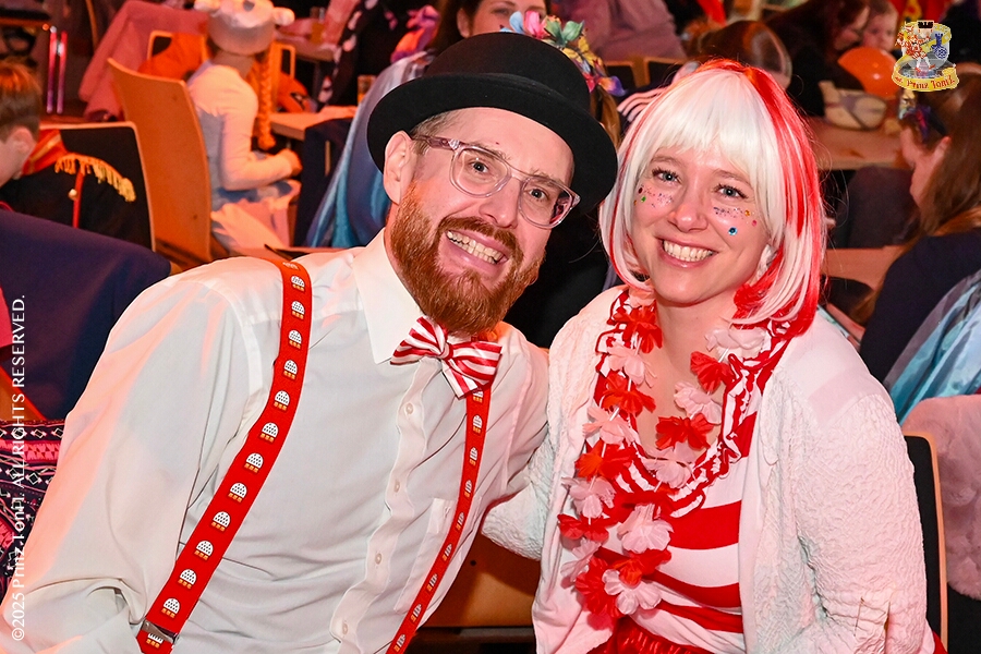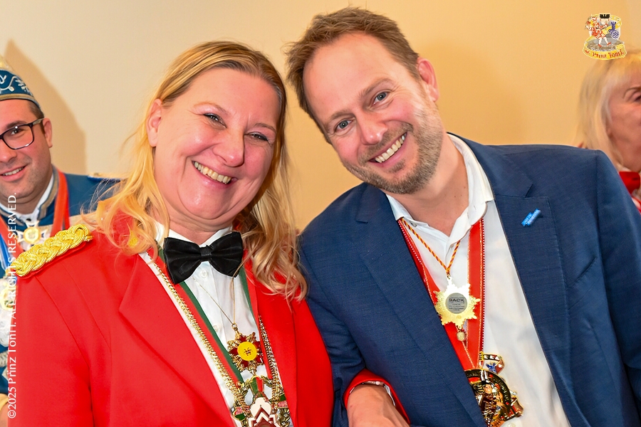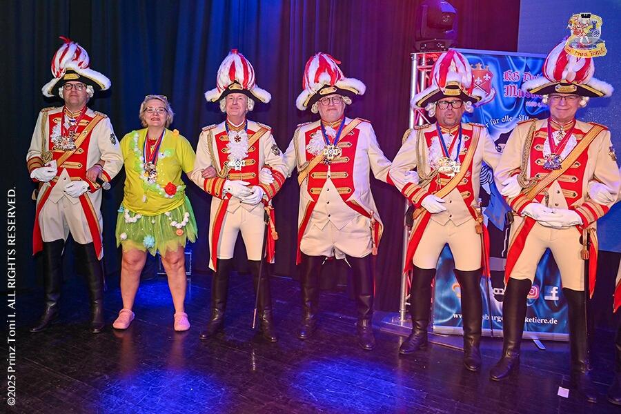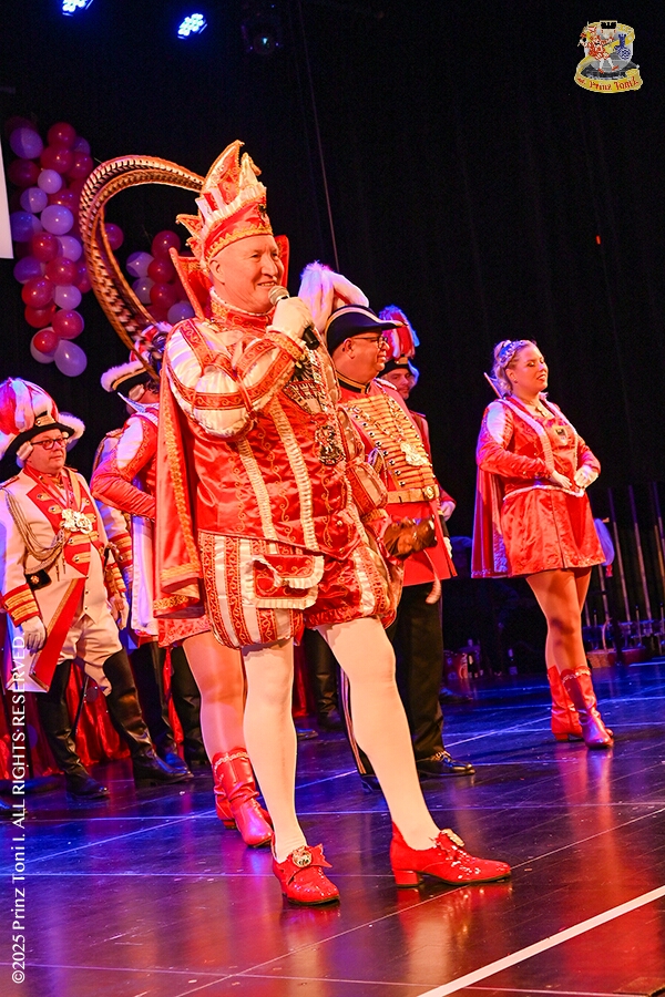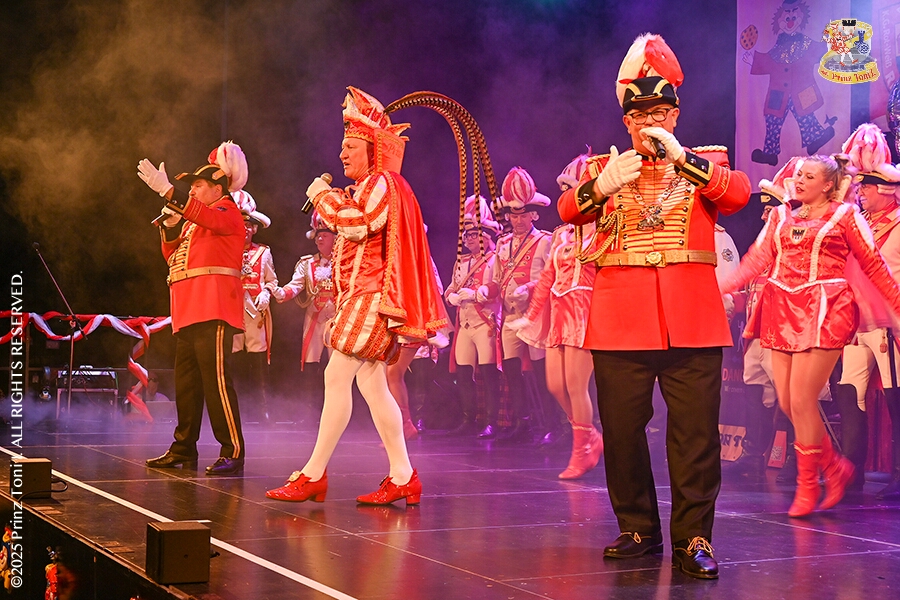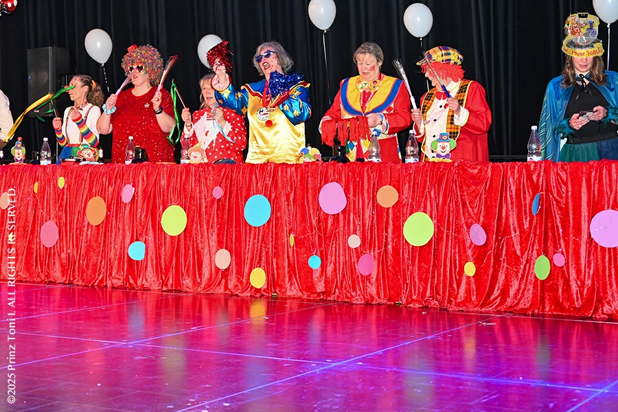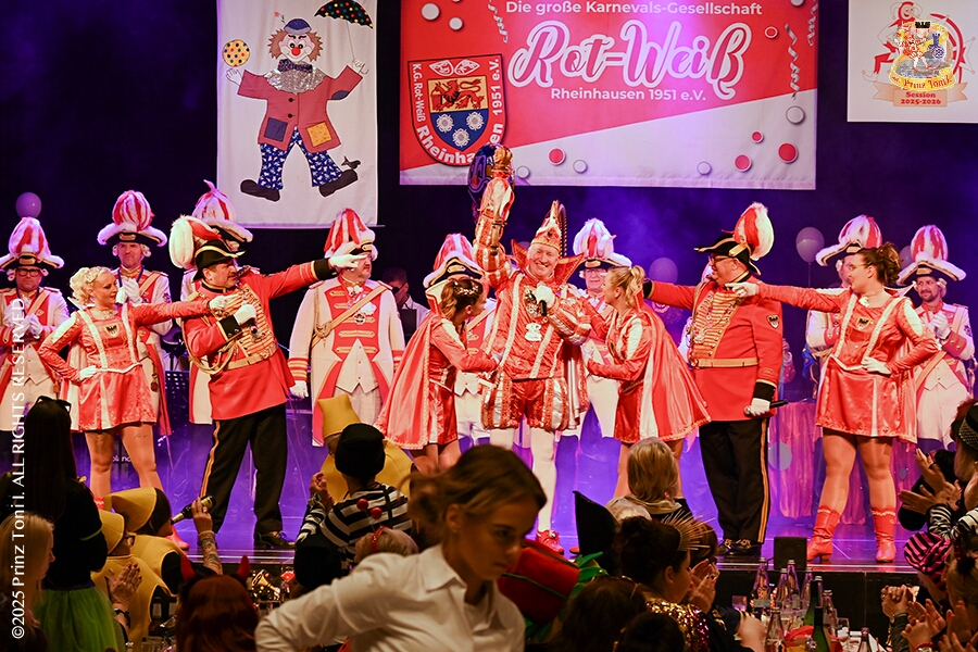 25 Tour-Tag, 1. Februar - Im Intercity Hotel feierten die Roten Funken ihr 77-jähriges Bestehen an diesem Sonntagmorgen, auch wir gratulierten. Auf zum Heimspiel für unsere Christin hieß es danach, dies bei der Damensitzung der » Blauen Jungs «. Eine große Kinderschar erwartete uns dann im Steinhof. Die Musketiere hielten dort ihre Kindersitzung ab. In die Rheinhausenhall führte uns dann der nächste Termin, Damensitzung von Rot-Weiß. Zum Schluß erwartete und die SPD Großenbaum/Rahm bei ihrem „Tanztee“ in unserem Stadquartier, dem Coupe 1900.