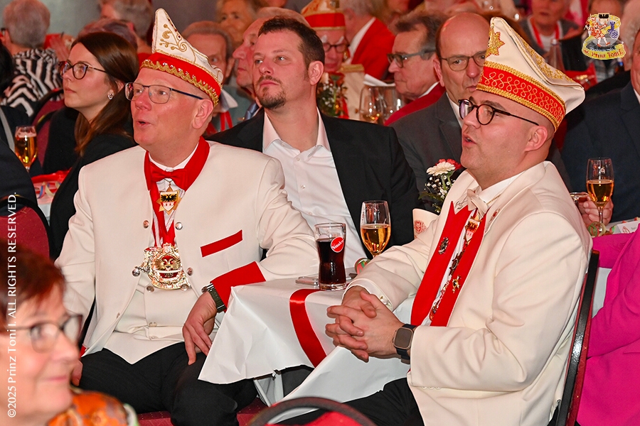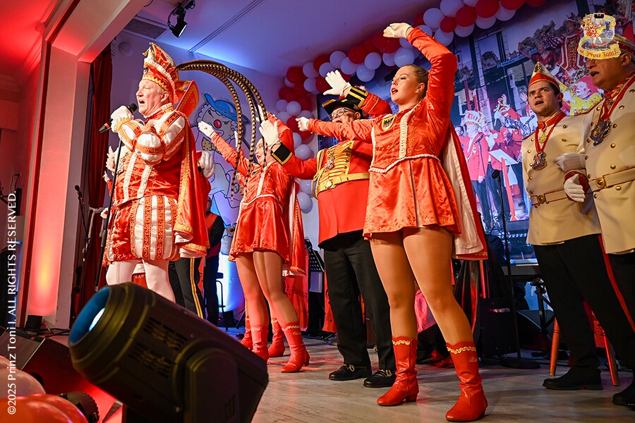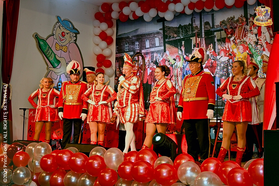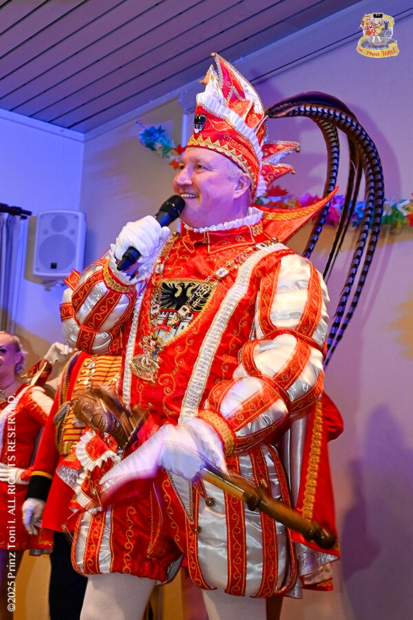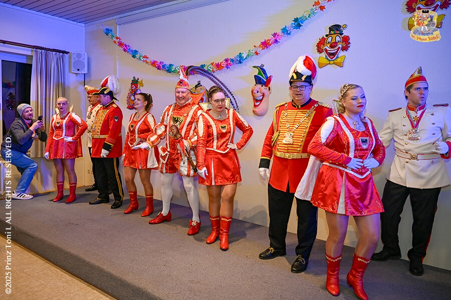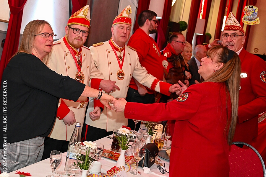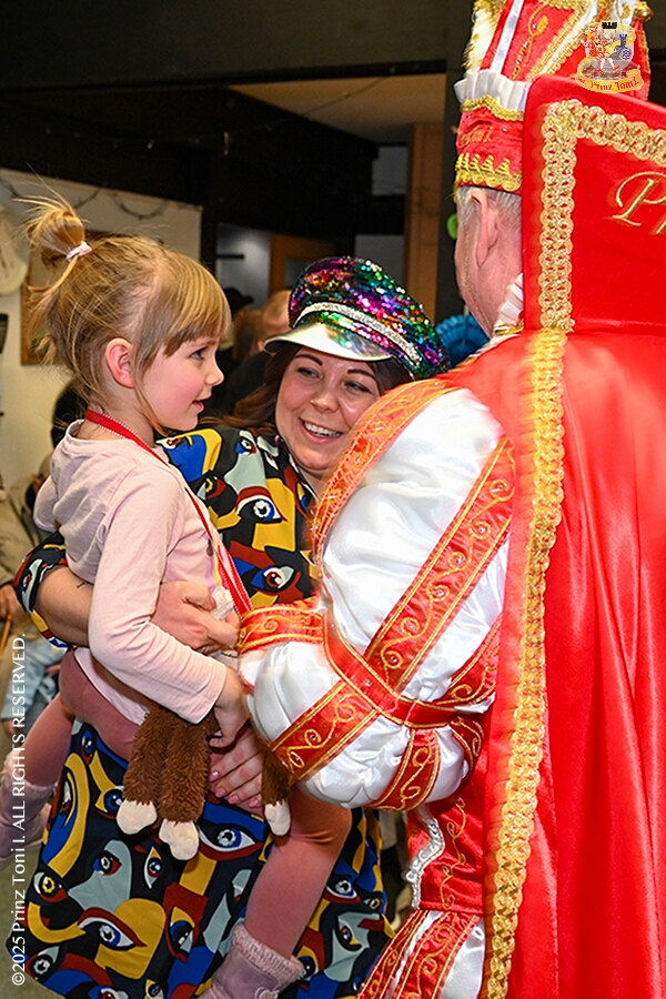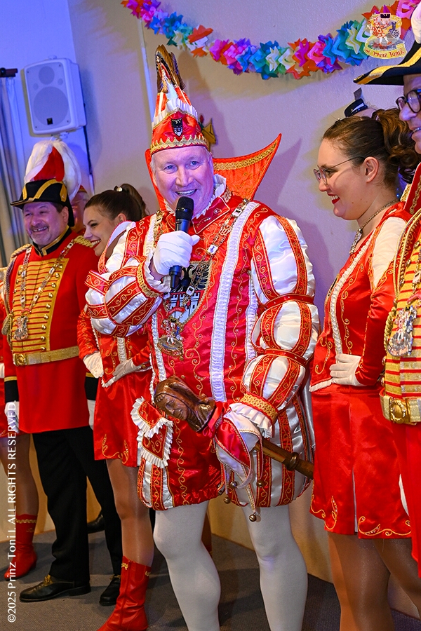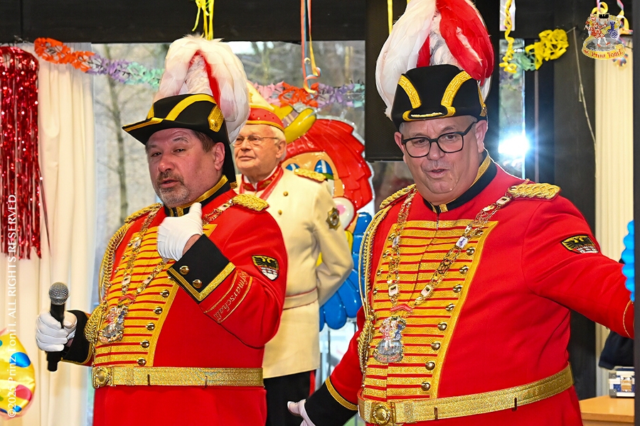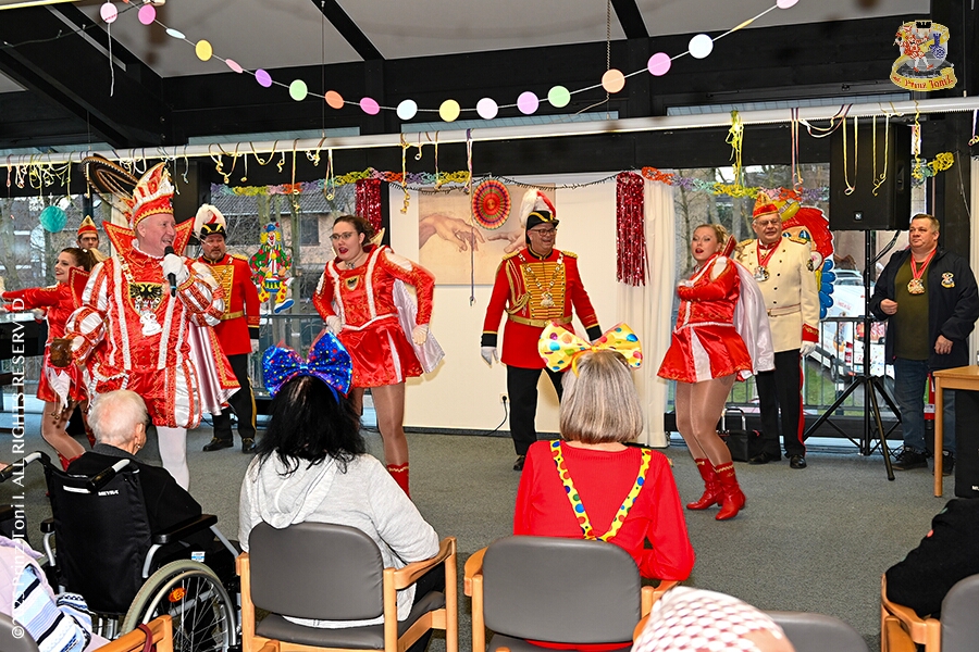 25 Seniorenkarneval und Flüstersitzung - An Nachmittag des 4. Februar führte uns der erste Termin in das DRK-Multikulturelle Seniorenzentrum Haus am Sandberg in Homberg. Zum 2. Termin musste wir in den Süden. In Huckingen feierte die KFD St. Peter und Paul Gemeinde ihren 2. karnvalistischen Nachmittag, Toni I. wurde ein Superstar empfangen. Gestärkt mit ausreichend Kuchen und Kaffee ging es dann nach Walsum. In Open Rheins „Zum Johanniter“ , dort fand die „Flüstersitzung“ der Prinzengarde statt.