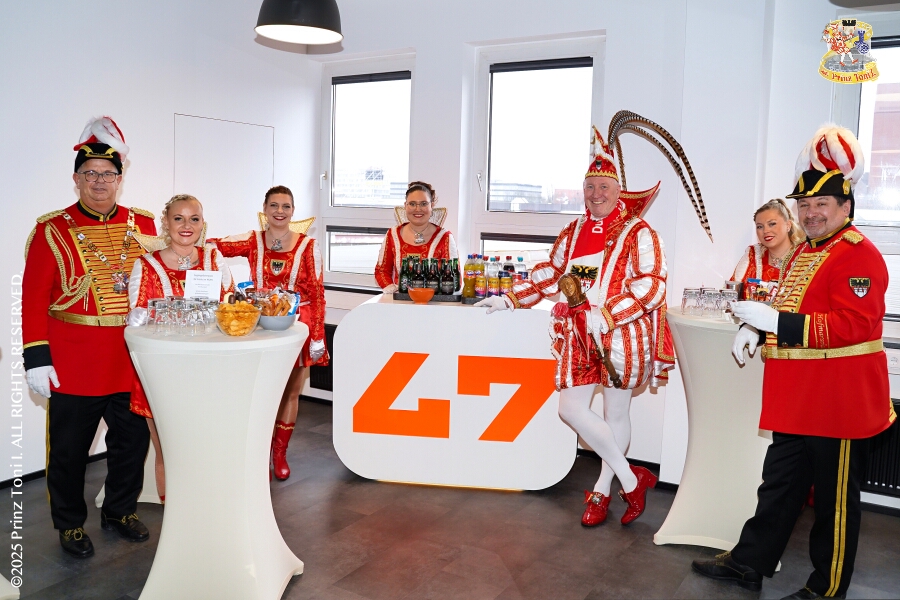47 Tour-Tag, 11. Februar - An diesem Mittwoch hatten wir2 Termine mit der Kinderprinzencrew zusammen, einmal den Rathausempfang in Rheinhausen und das Wiegen bei der DEKRA. Nach dem Besuch im Studio 47 ging es in den Steinhof zum Abend für den Bürger des Jahres.